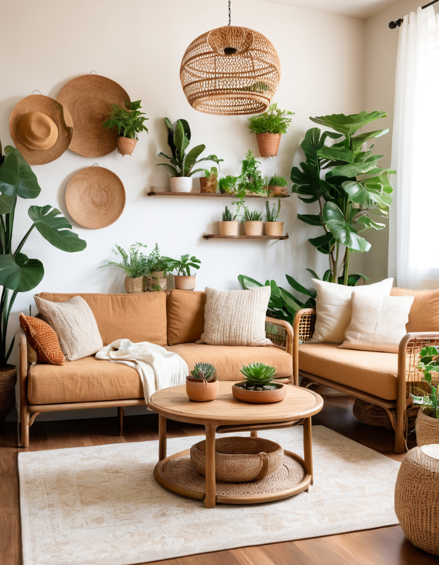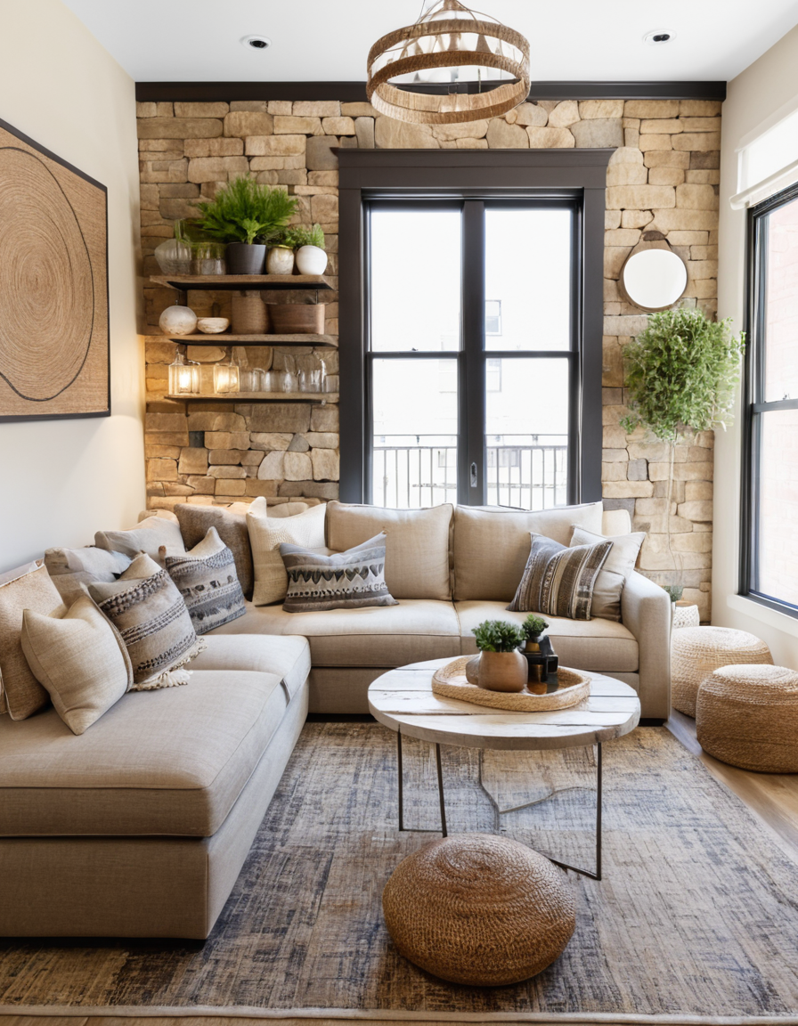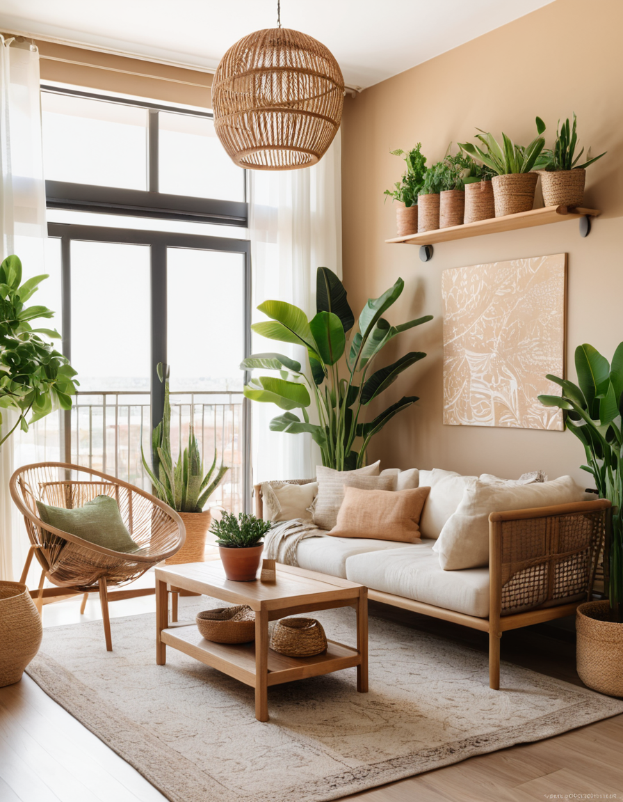 Earthy and natural living spaces inspire us to bring the feel of the outside indoors through the use of natural materials, earthy color tones, and a lot of greenery. The use of woods, rattan or linen, or wool can be the line of this in an apartment. Give your space a homely feel by adding potted plants, hanging planters as well as nature inspired art. Choose colors like organic browns, serene greens, and peaceful neutrals, that establish the desired relaxing ambiance. This design is most suitable for the inhabitants who aim to bring a peaceful and grounded living environment into life.