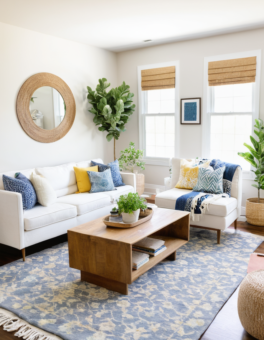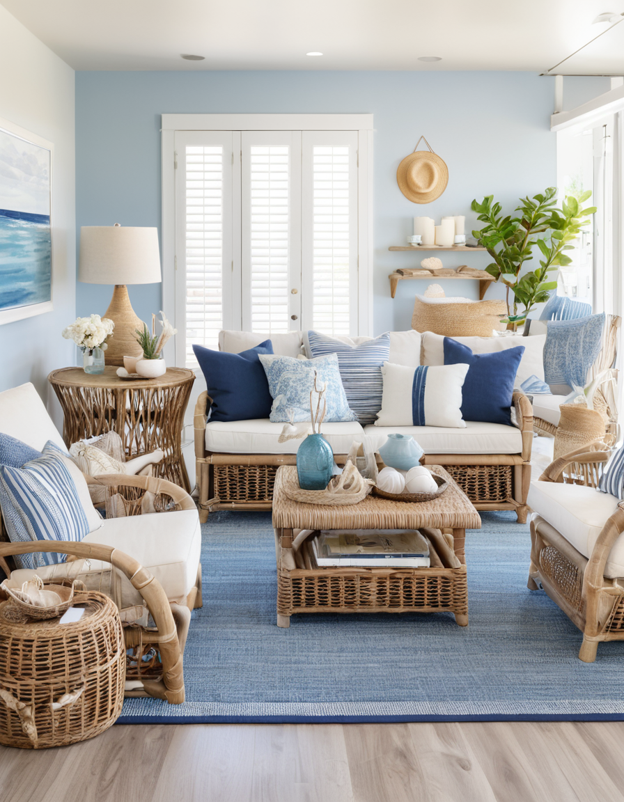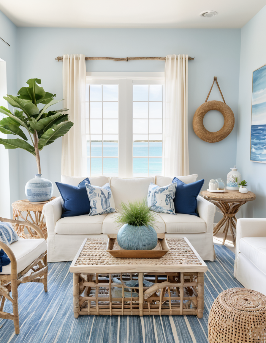 The beach-inspired decor idea is definitely the best thing for creating the atmosphere of lightness and air, which is typical of the ocean which, in turn, breathes fresh air into your apartment. The light, as well as airy aspects, are the principal elements of this style, besides the use of a natural material and a soft color scheme. Use ice blue, white, and oatmeal in combination to recreate the aquatic mood. Schedule a greenspace schedule that includes items such as decorative driftwood, glass pieces, and referai to the furniture and decorations. Choose thin and movable curtains to let the morning light go through, and decorate the walls with sea-style materials or nautical subjects. This method of composition is sure to induce a peaceful and unbeatable amicable living room climate in your flat.