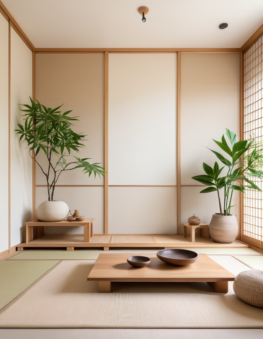 The Japanese inspired minimalist decoration stands up for minimalism, efficient use of the space, and a strong relationship with nature. To achieve the same look in a smaller house, neutral hues, low-profile designs, and the use of real wood, bamboo, and stone can be suitable methods. Furniture pieces having clean lines and getting rid of clutter by hiding storage arrangements are the suggested tips for making the apartment look nice. Set up a clean and harmonious environment by including elements of nature including potted plants, shoji screens, and tatami mats among others. Through basic design, spaces are expanded, and at the same time silence and mindfulness are promoted.