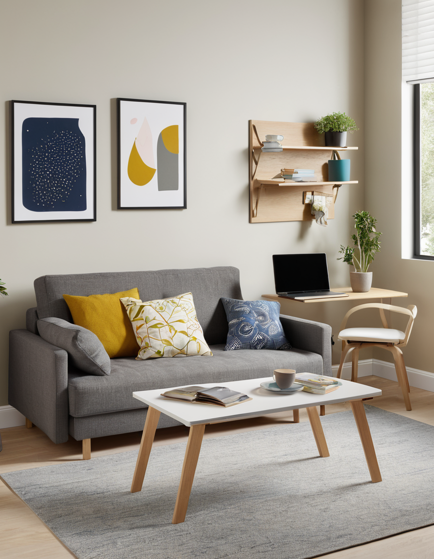 In a small apartment, space-saving furniture should be ensured to provide both function and style. Look for pieces that can be used for different purposes such as a sofa bed, a coffee table with unseen storage, or a dining table that also works as an office table. You can also save the flooring spaces by using wall-mounted desks or fold-out tables. Nesting tables, stackable chairs, or expandable furniture are also good choices for setting your living room to be the best productive. With this kind of clever furniture, you can create a flexible and efficient apartment layout that is capable of adjusting according to your needs.