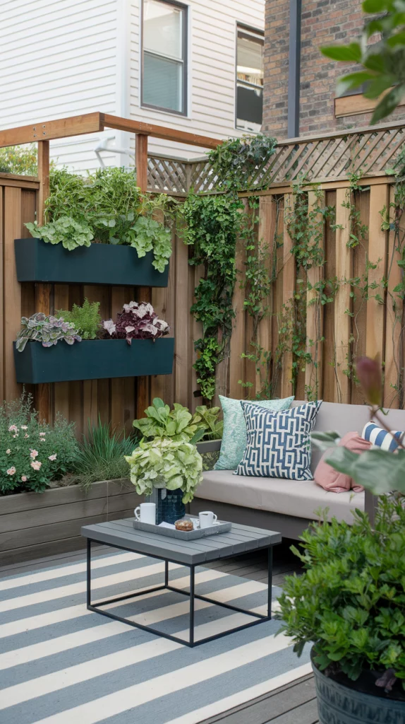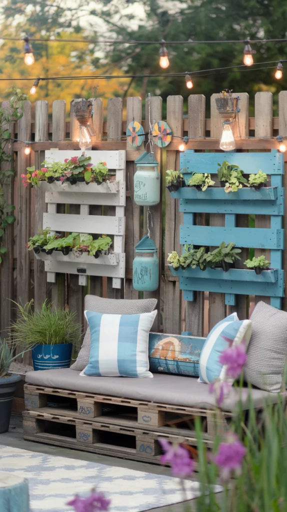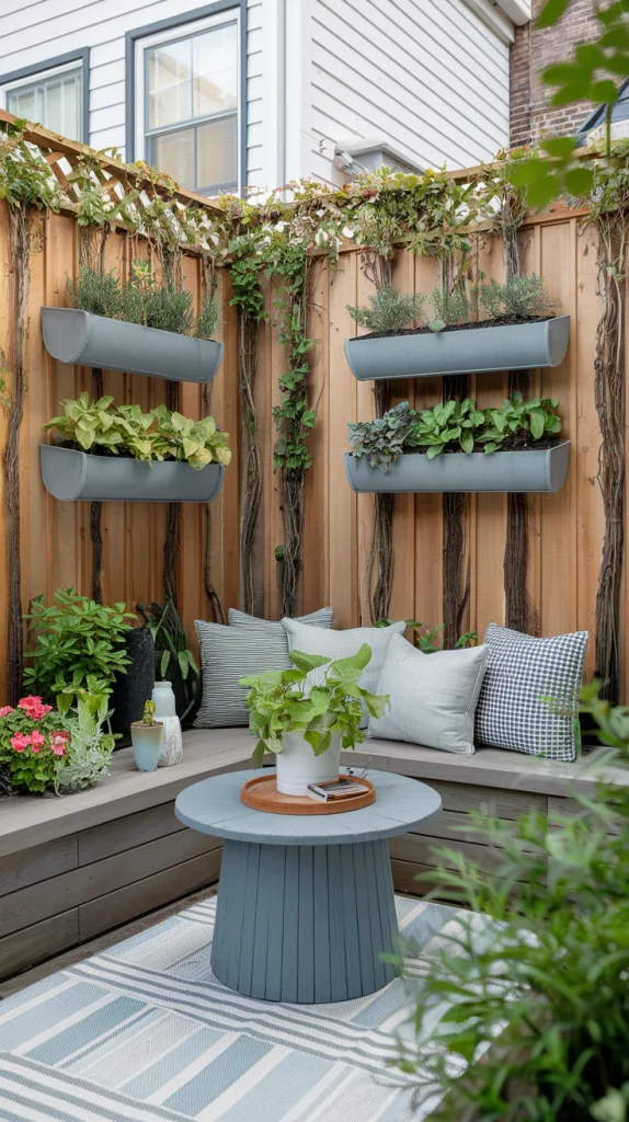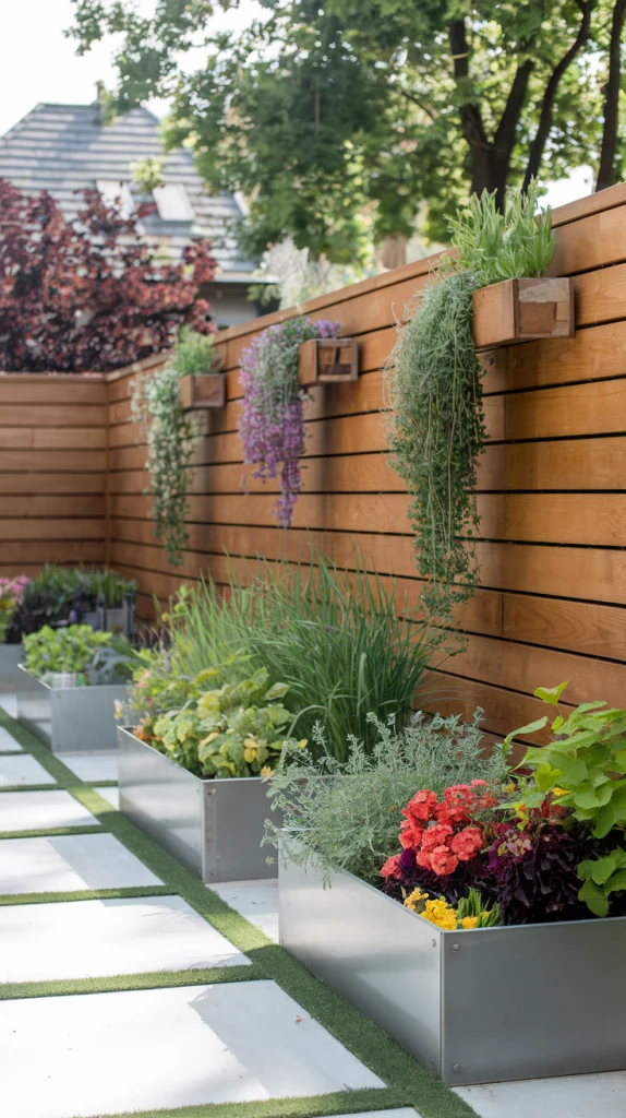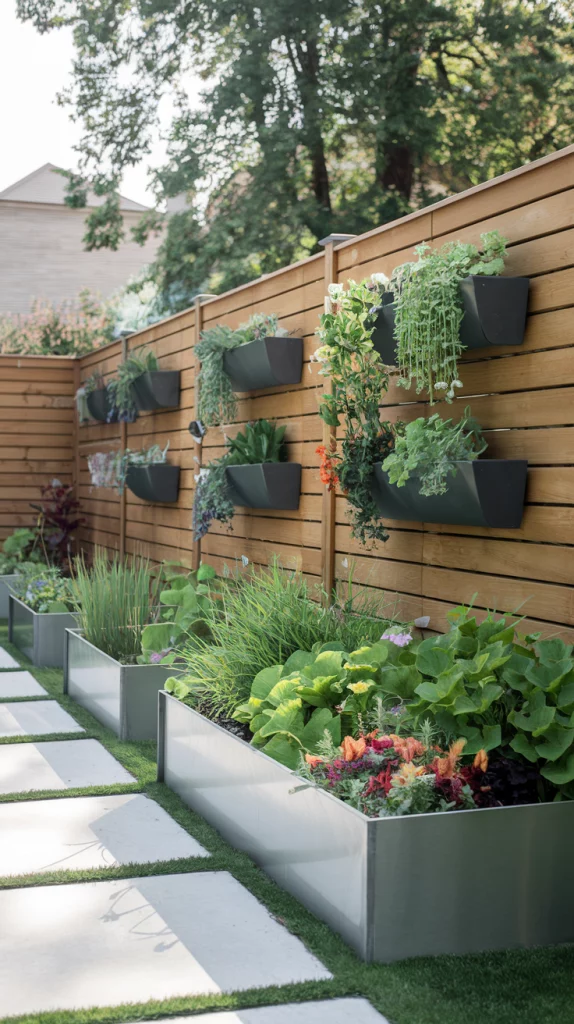 A vertical garden transforms your fence into a living wall with layers of plants, herbs, or succulents. Use hanging pots, modular panels, or wall-mounted planters to maximize space. This approach is ideal for small yards where ground planting is limited, adding depth and texture to your fence.