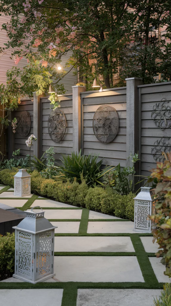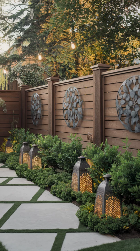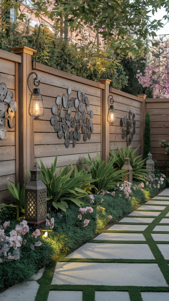 The last details bring a fence landscape to life. Add personalized decor like metal art, small statues, or statement planters. Use subtle outdoor lighting to highlight textures and focal points. Ensure the design remains cohesive by selecting consistent colors, materials, and plant varieties that blend seamlessly.
