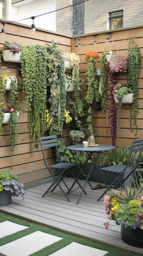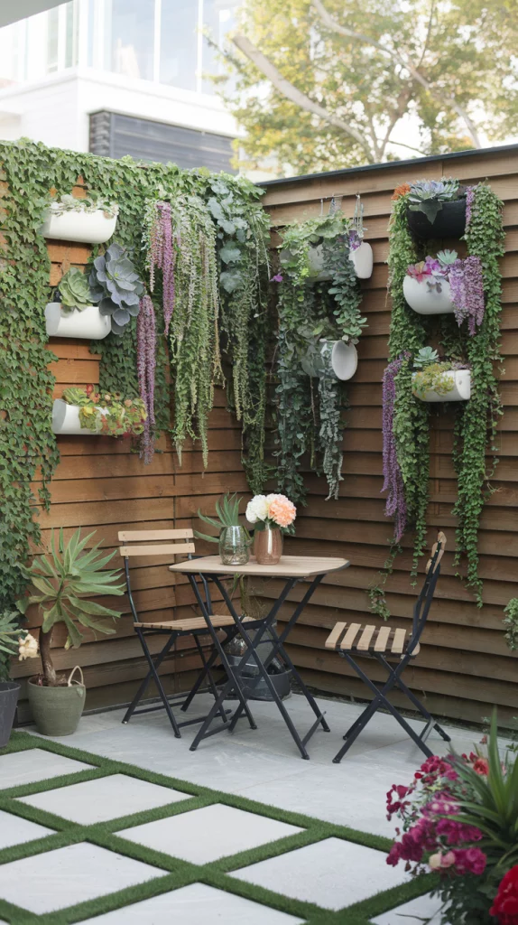 For small yards or limited space, hanging planters provide a vertical gardening solution. Use wall-mounted pots, hanging baskets, or floating shelves to create a vibrant living wall. This method works well with herbs, succulents, and trailing flowers, making it both decorative and functional.