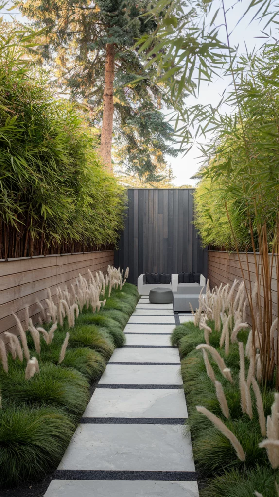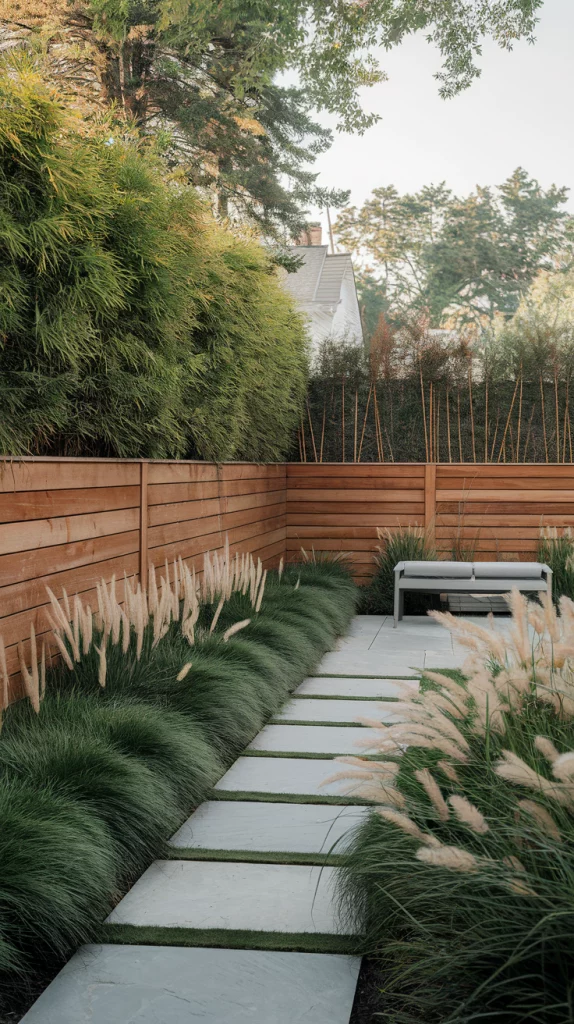 Backyard Fence Landscaping with Bamboo and Grasses