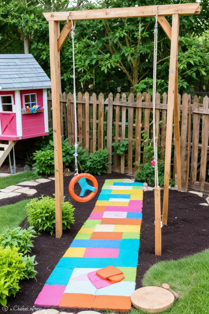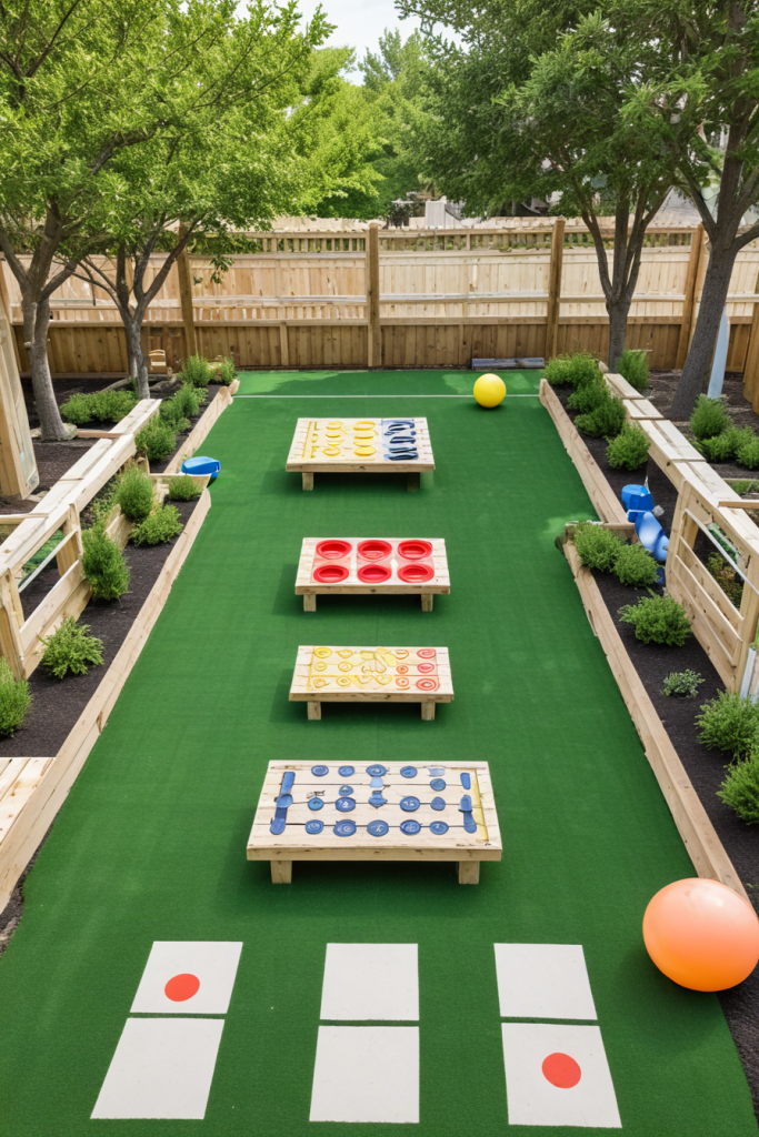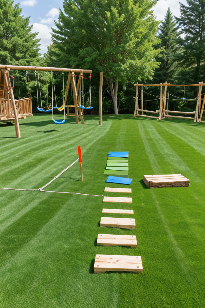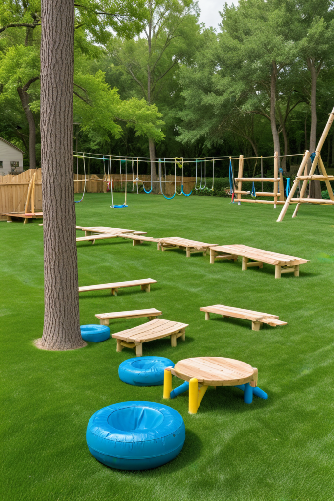 An adventure yard gaming will be a cool thing to do for energetic kids those are always for a challenge. You can balance beams, stepping logs, hanging rings, and tunnels to make such a dynamic course. Additionally, you may want to try agility ladders, jumping tires, and mini hurdles as well which are actually good to train speed and coordination. To add even more fun, use a slackline, a zip-line, or a rope-climbing section.