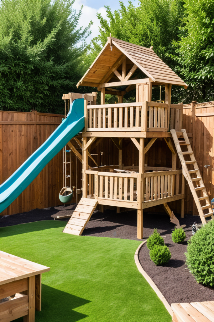 Changing your backyard into a playground can offer children a unique way to use their imagination while spending time outside in a safe environment. From simple DIY builds to more complex custom designs, there is no limit to how creative you can get with your outdoor space. Have you constructed a playscape in the yard? I would love to hear your ideas and experiences in the comments!