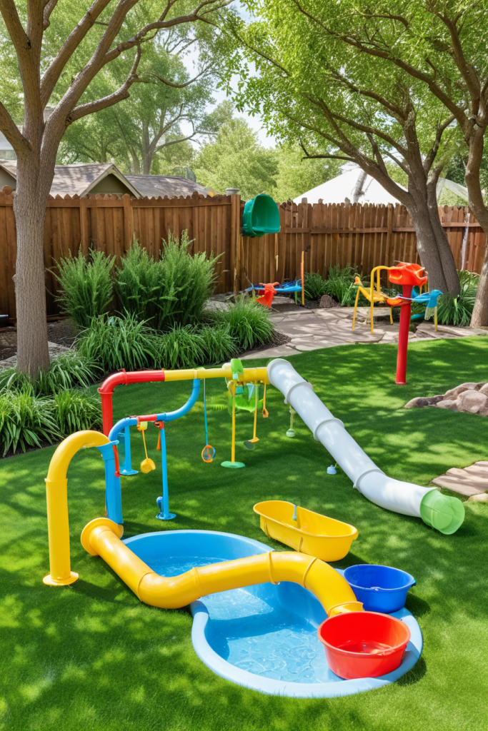 Incorporating Water Play features can easily make your backyard an appealing and entertaining zone for children. Things such as a splash pad that has built in water jets, a small stream in the backyard, or even a Do-It-Yourself water wall with pipes and funnels can greatly amuse children for hours. For something more thrilling, set up a slip & slide, misting tunnel or a small wading pool with floating toys in it. Having these setups not only helps in providing relief during scorching hot days but also give an open place for your kids to play, sensorily.