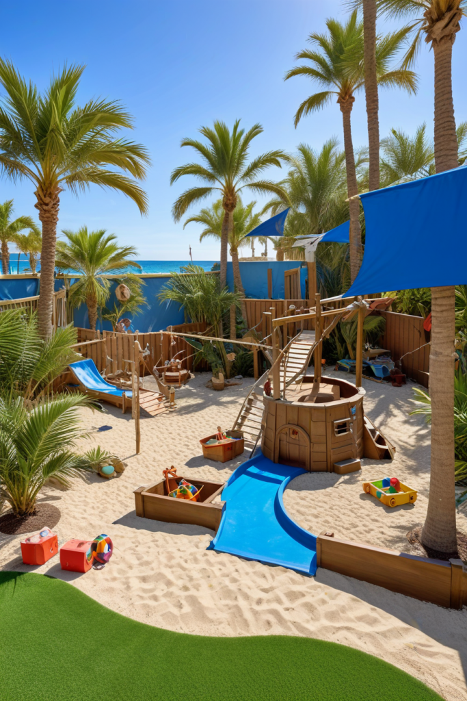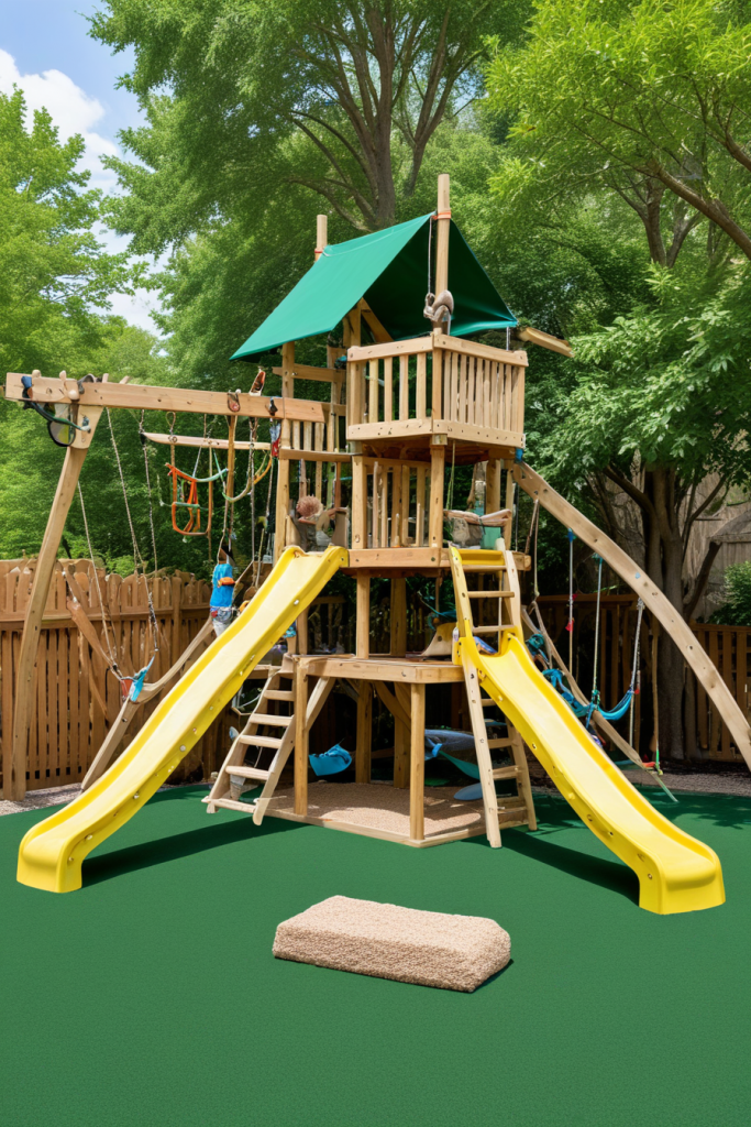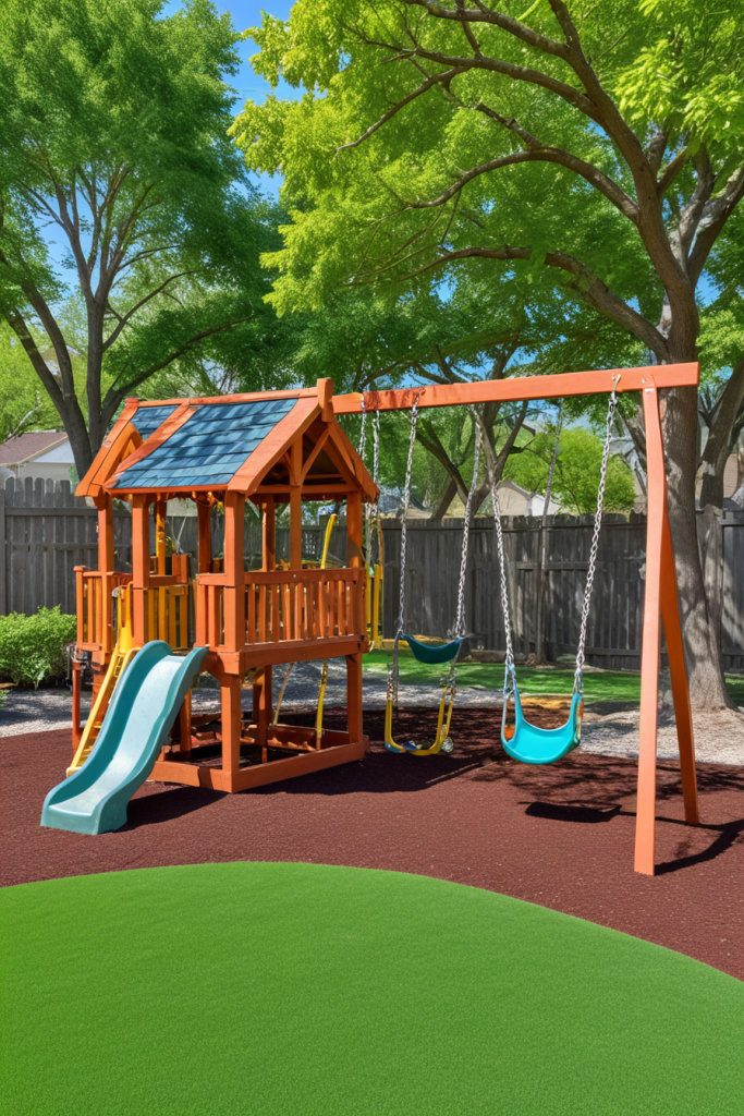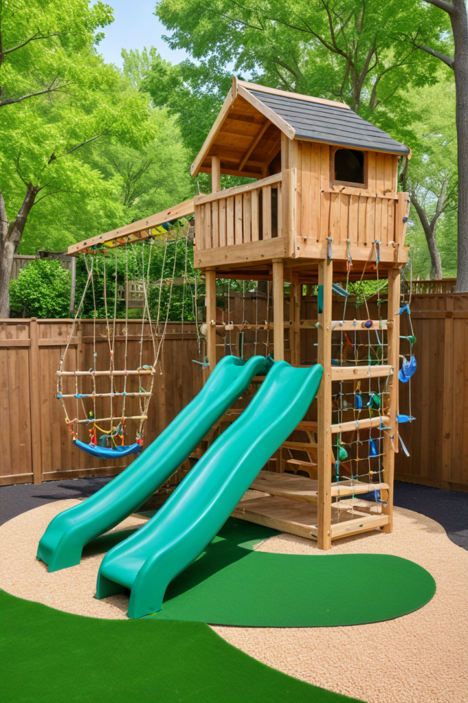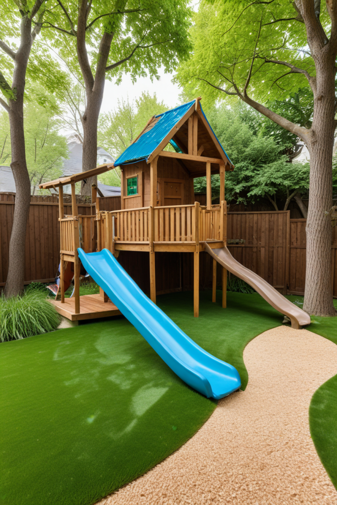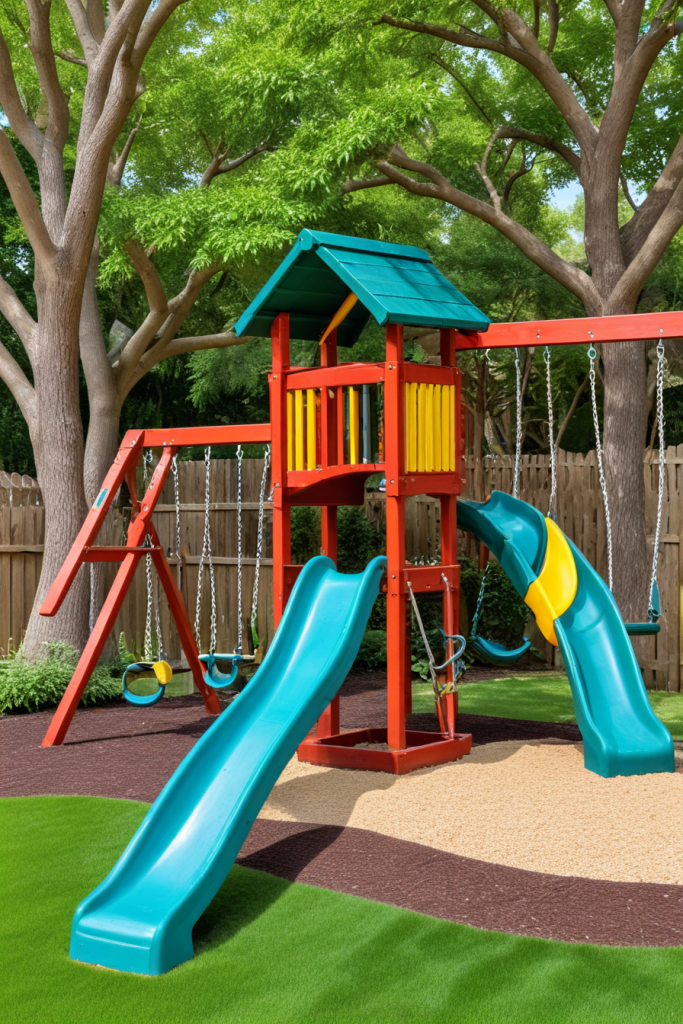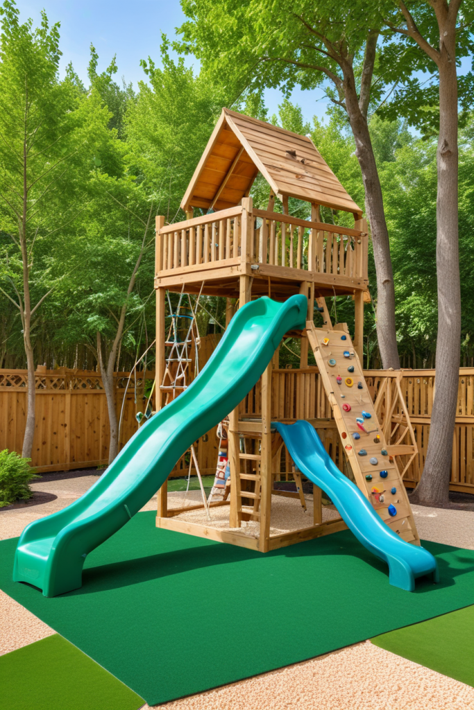 A waterproof playground ensures enjoyment for all during the entire year and supplies protection for equipment from the weather. Select UV resistant materials for outdoor structures and apply waterproof finishes to the wooden swings and playhouses. For sun protection, install permanent shade sails or retractable awnings. To avoid muddy playgrounds after it rains, gravel pathways and raised platforms provide drainage.