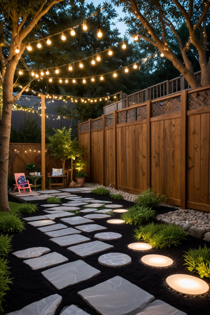 With backyard lights, backyard fun can extend into the night, and safety will also improve. Having LED bulb fairy lights, solar lanterns, and pathway lights creates a unique setting. For extra lighting during night play, glow-in-the-dark stepping stones and motion-activated spotlights will do the trick. For more fun ideas, a glow stick obstacle course could be entertaining, or a chalkboard wall that could light up at the back for nighttime doodles.