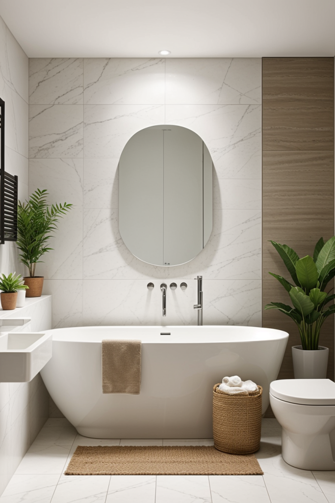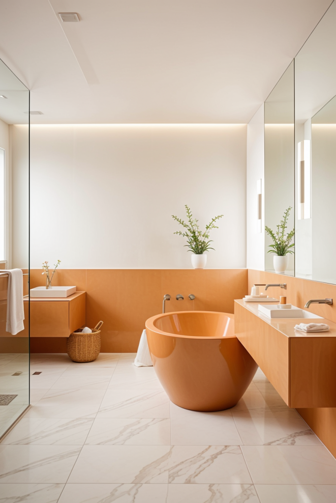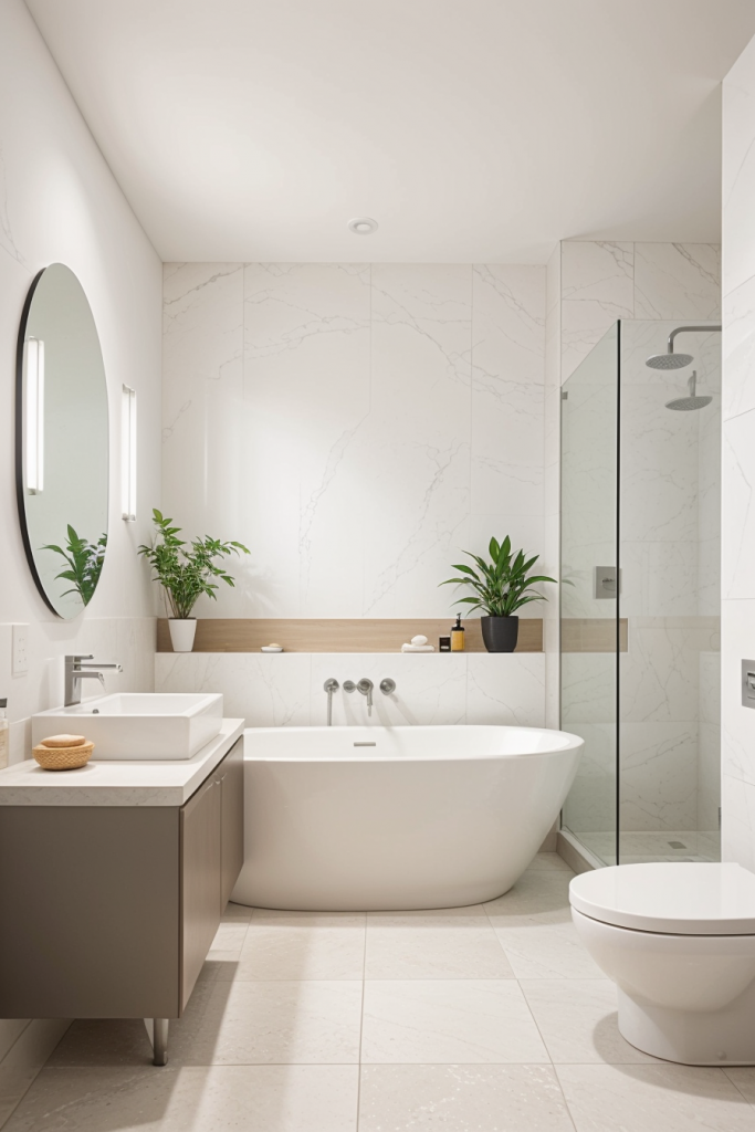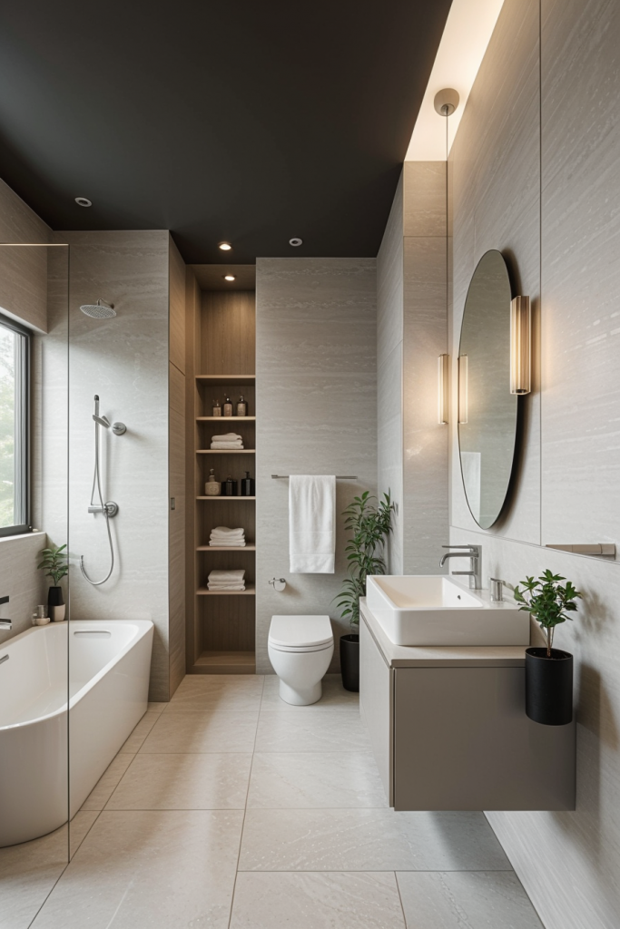 Contemporary bathrooms are designed in a way which combines appealing lines and warm elements simultaneously. This blend offers visual appeal as well as high practicality. A blend of minimalistic style furniture, modern storage features, and delicate decorative accents is the best fit for this modern approach, which is perfect for people who like neat, uncluttered yet cozy spaces.