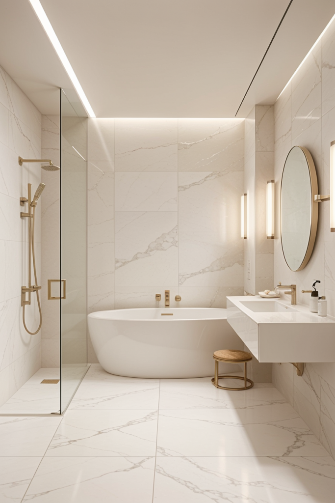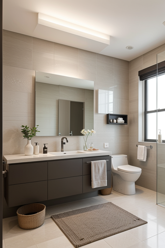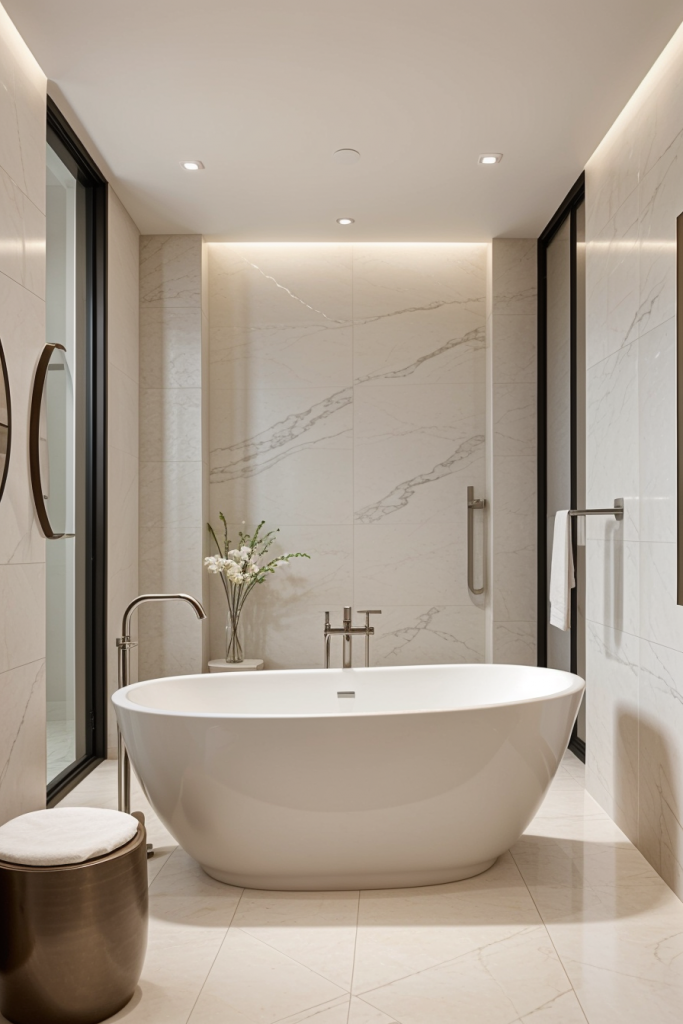 Because of high-end bathroom accessories and decor, the space transforms into a luxurious refinement. Decor like art pieces, designer soap dispensers, premium towels, and other carefully selected items enhance the ambience without hindering modern aesthetic.