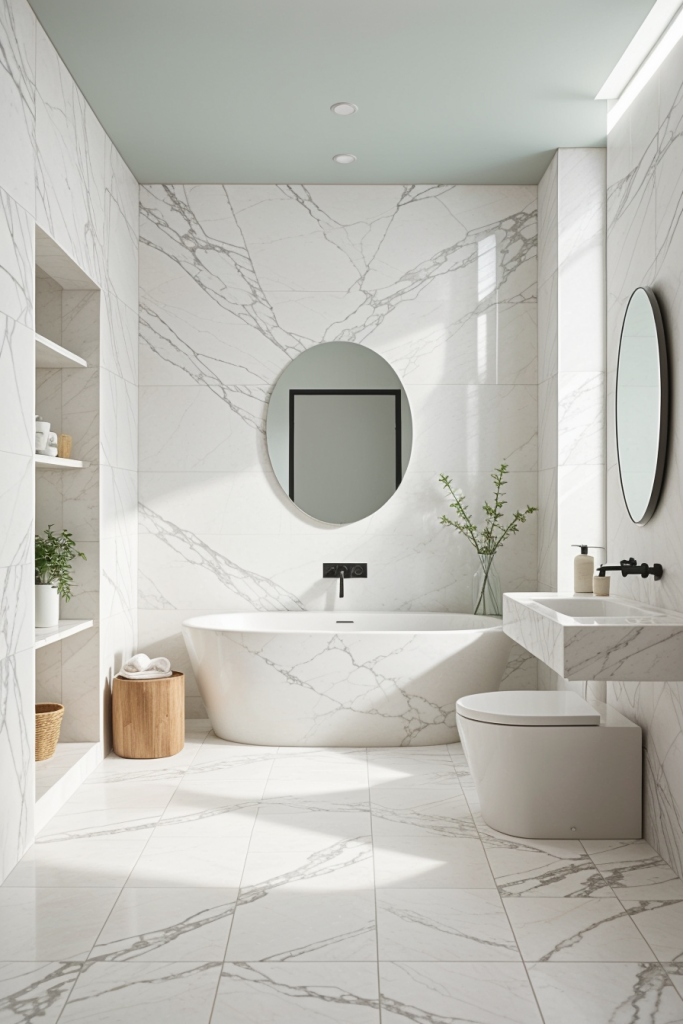 Adding marble and stone accents brings natural beauty as well as great toughness to the bathroom’s design. The materials have such amazing charm that the walls and floors of the bathroom will contain exquisite patterns and textures which is undeniably interesting.