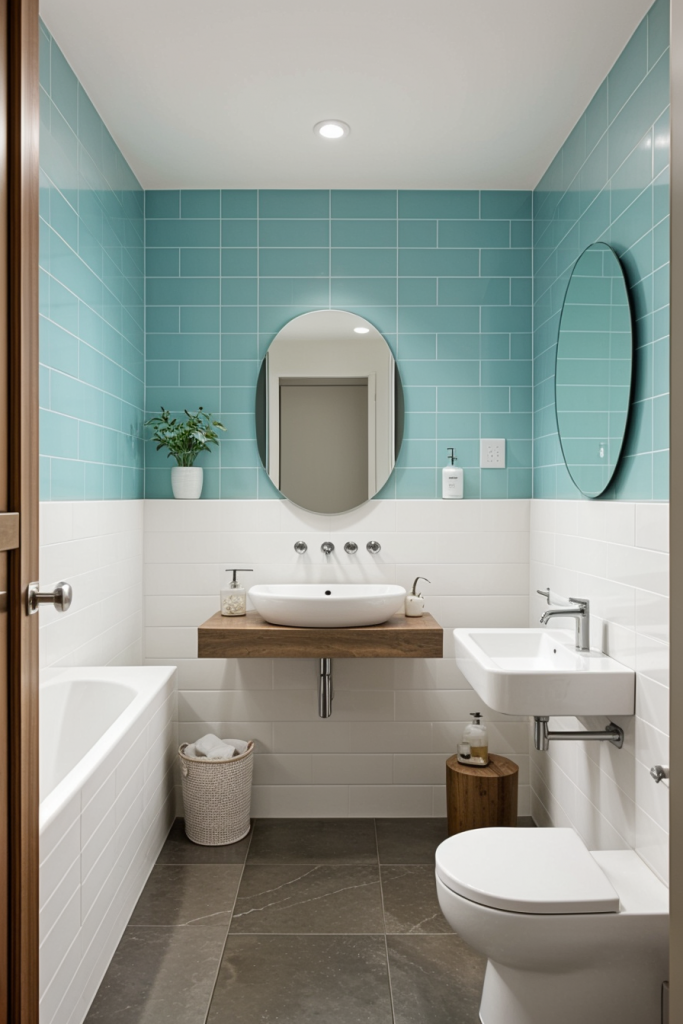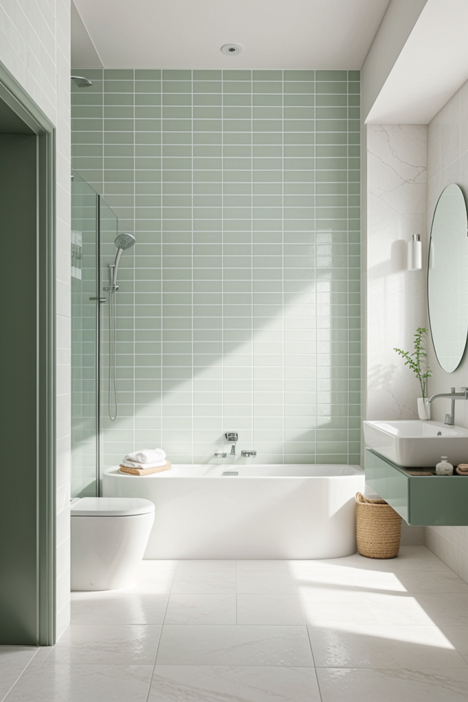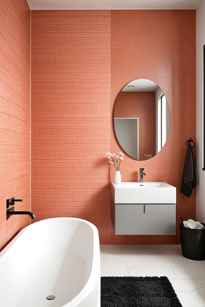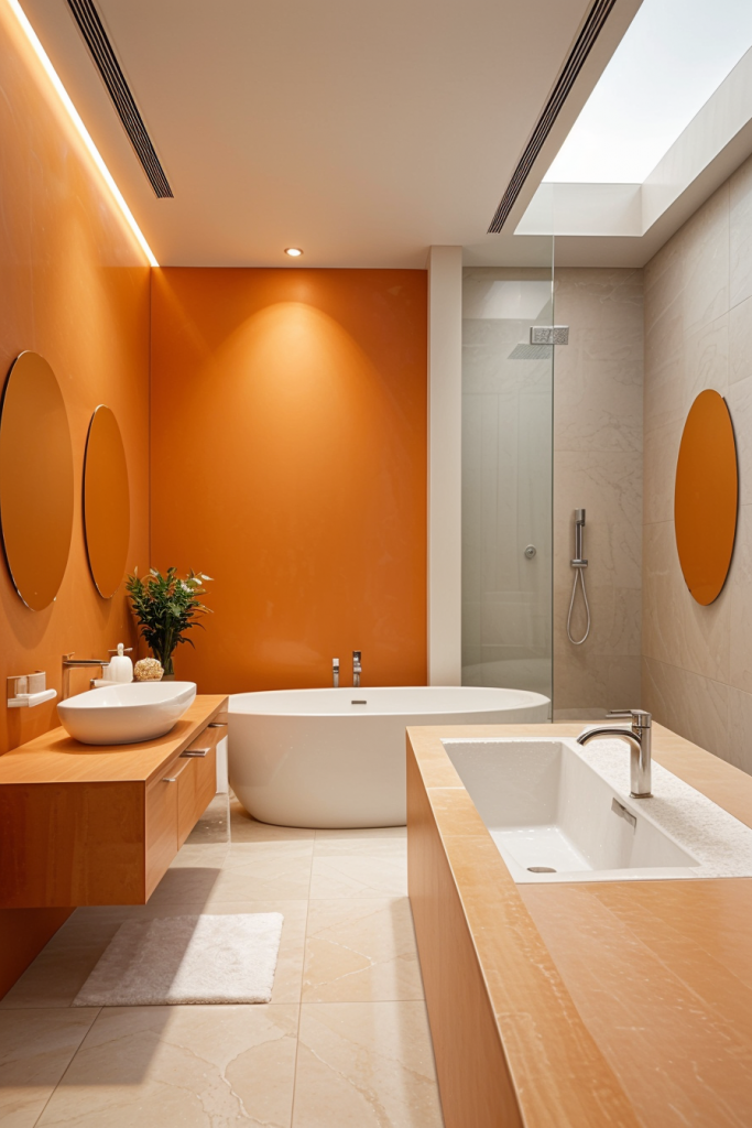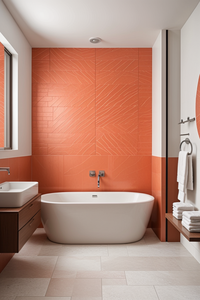 Using accent walls in modern bathrooms adds a specific touch, providing an elegant contrast to the existing features. These walls can be designed using the rich color patterns of intricate tiles, and serve as an anchor for the surround minimalistic elements and bathroom dekor.
