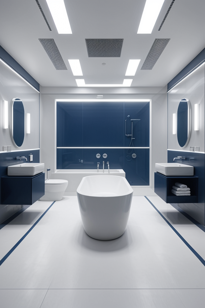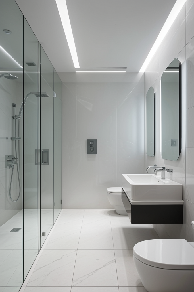 Cutting-edge technology is built into bathroom aesthetic dekor to facilitate luxury and convenience. Modern design elements compliment smart showers, automated faucets, and high tech mirrors which provide intuitive control to the bathroom.
