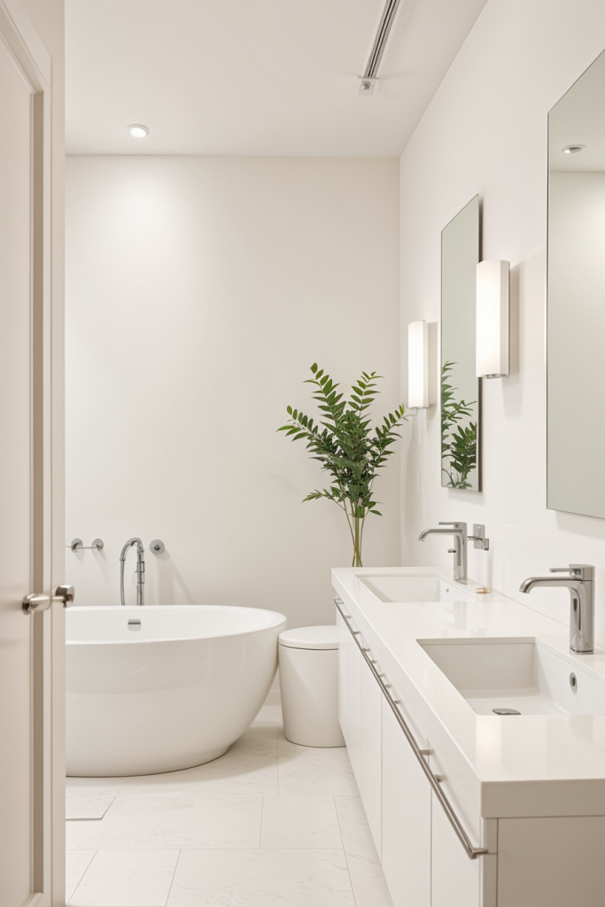 Minimalism paired with impactful fixtures and finishes is what gives focus to bathroom designs, merging clean lines with purpose. A perfect example of this is the expertly designed space accomplished through the combination of sleek faucets, refined surface finishes, and subtle hardware and the latter exudes modern simplicity while simultaneously serving a bold visual statement.