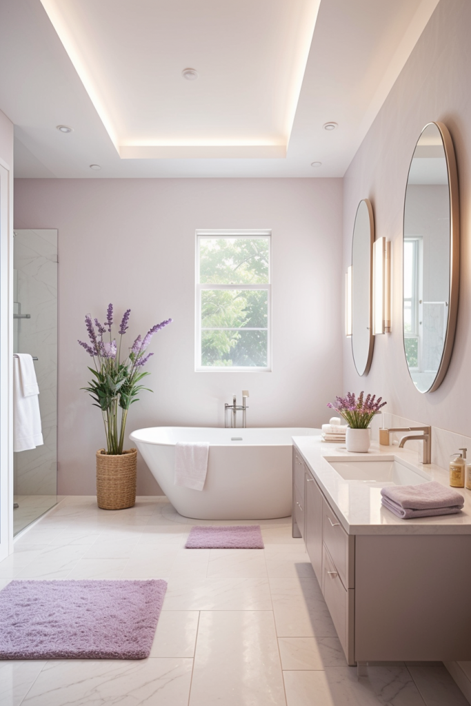 Modern design in bathroom spaces lean toward delicate and soothing colors, having a touch of elegance and tranquility. Such palettes are often decorated with bolder accents. In doing so, visual appeal is achieved while retaining cohesive polish in the aesthetic.