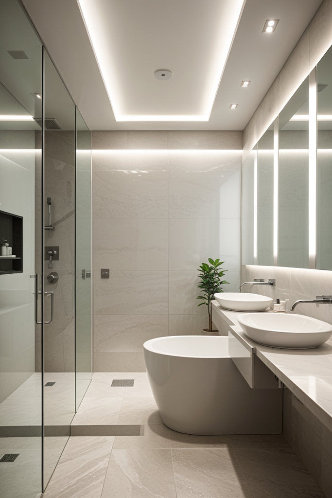 Because of high-end bathroom accessories and decor, the space transforms into a luxurious refinement. Decor like art pieces, designer soap dispensers, premium towels, and other carefully selected items enhance the ambience without hindering modern aesthetic.