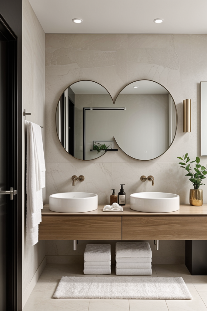 Mirrors and glass Statement accents in a bathroom design are a major attention grabber, adding a certain depth and character to that space. Light is reflected and amplified by oversized mirrors, artistic glass panels, and other innovative reflective surfaces creating an illusion of greater space which enhances the overall beauty of the room.
