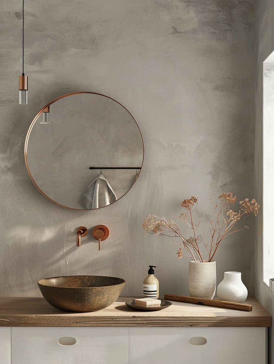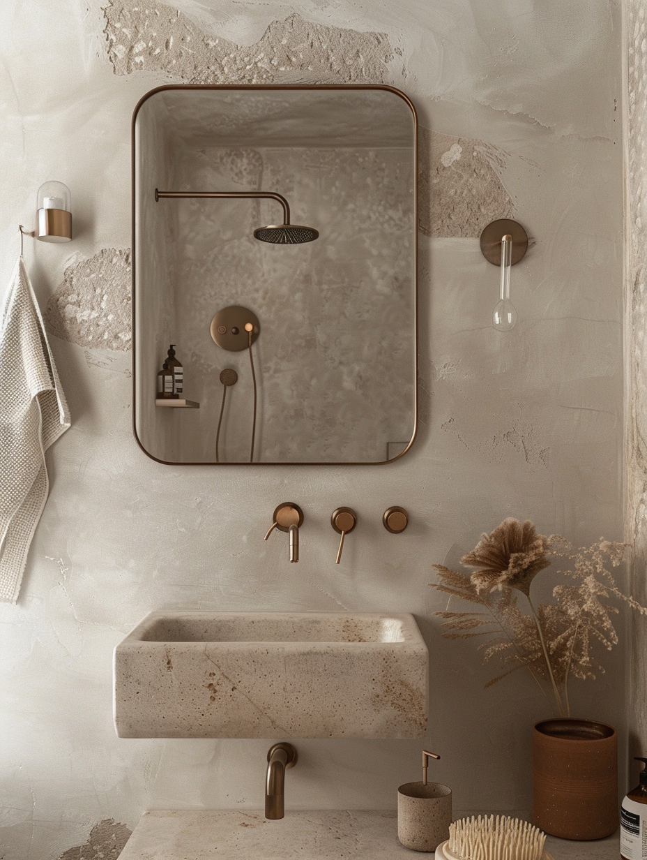 Muted taupes and beiges give you many ways of making your bathroom varied, elegant, and chic without any garish colors. These neutral hues lay down the calm and unimposing charm, which is very appropriate to be sewn with diverse textures and materials. Your combination between neautur, reference, and toadstone water 出copper/curtain metal mean a building with suite elements through harmony of color The proposed pattern gives the feeling of endlessness and flexibility.
