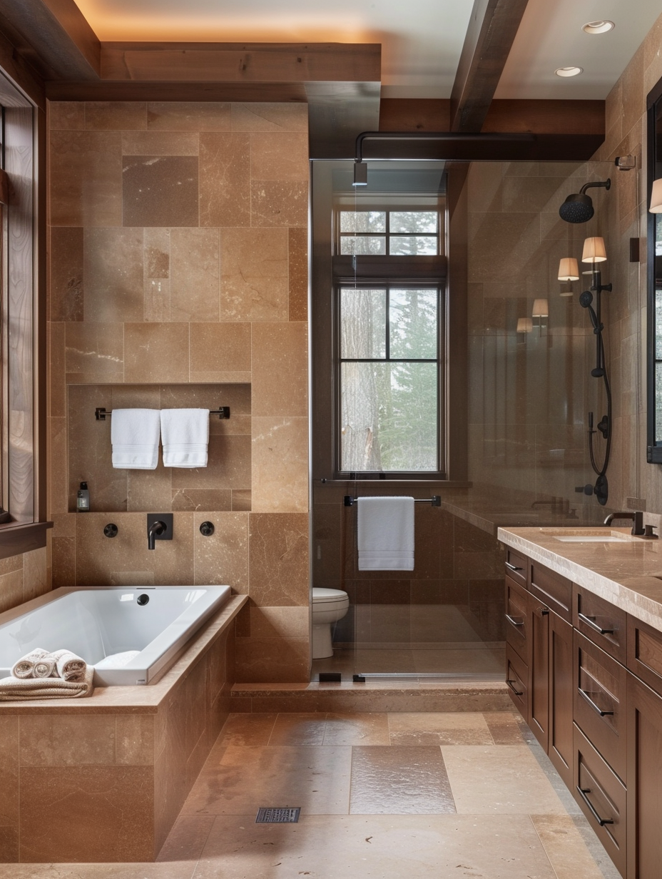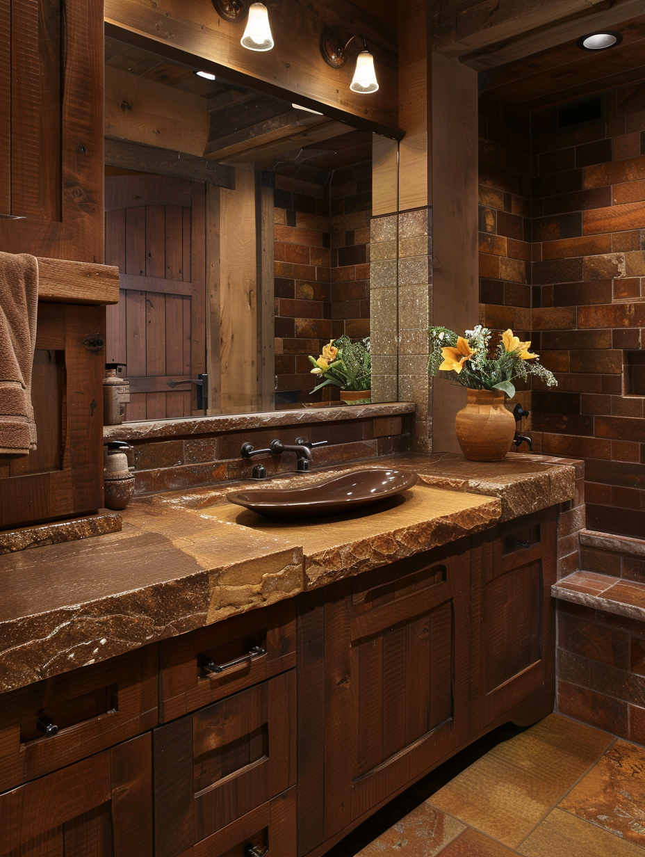 Warm and inviting browns are ideal colors to achieve a welcoming and comfortable feel in your bathroom. Mixed with natural wood and stone favorites, options like chocolate, caramel, and tan seem to exist in nature. Browns, such as brown tiles, wooden dressers, and stone countertops, are recommended. This decoration is suitable for people who prefer a very cozy, although somewhat luxurious, interior of their bathroom.