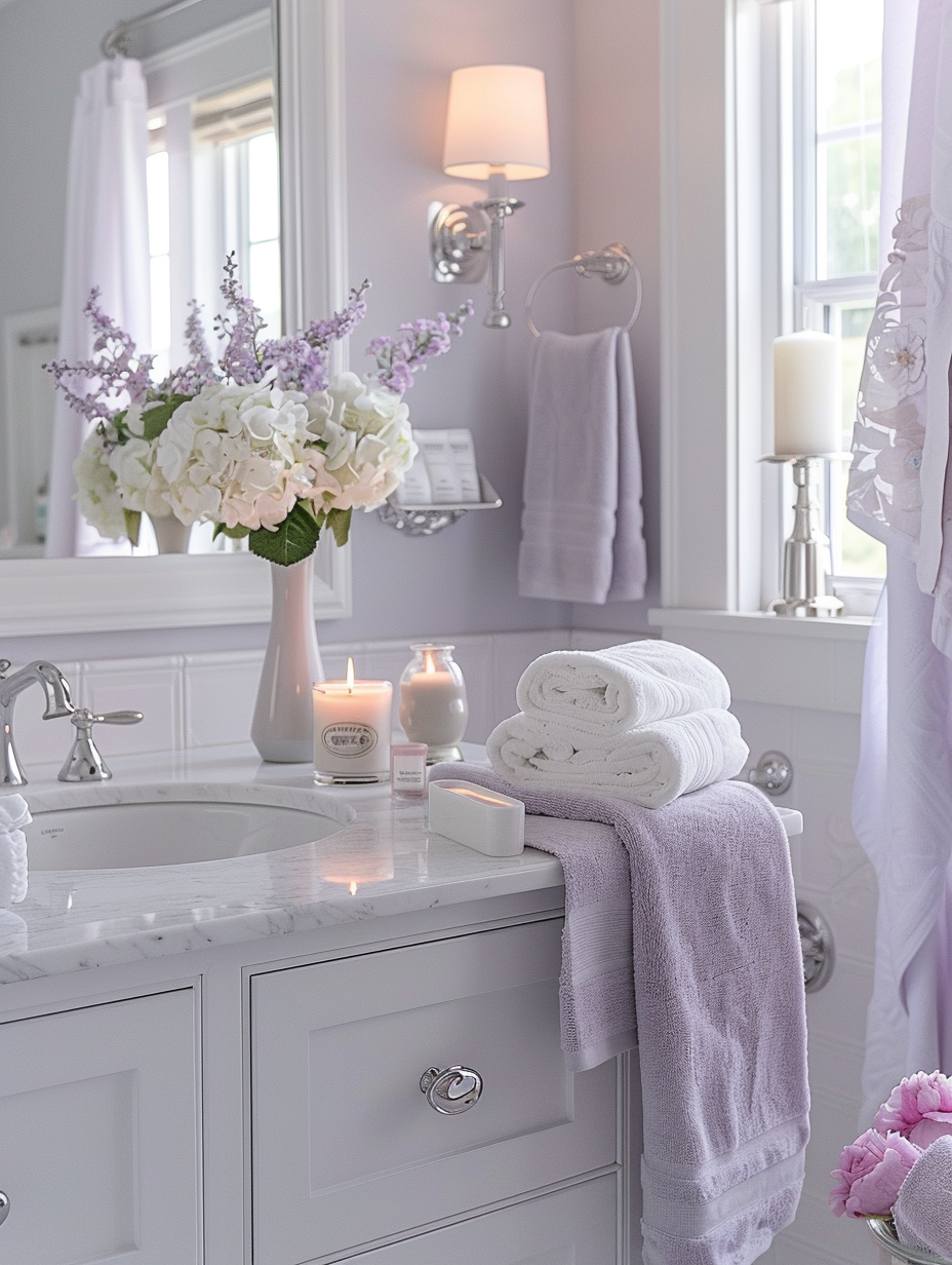 The tranquility of the violet is perfect for the quiet and peaceful atmosphere of your bathroom. Create light lavenders or lilac-colored walls, for instance, with both, white or grey installations and floral items to give the impression of peace and style. Go with permanent details such as a lavender heritage, plush towels with electric blue hues, and an elegant vanity piece. This design is just ideal for people who require a quiet and beautiful bathroom space.