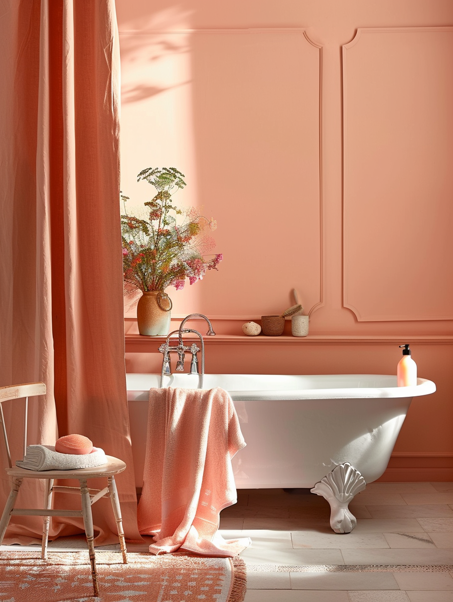 Corals and peaches that are bright and cheerful flooding is a good start. A combination of coral or peach walls, light grey or other color patters with white bathroom stuff plus beachy decor will result in an active and warm space. Why not buy some echoes such as towels with beach vibes, beach-inspired artwork, and fresh-cut flowers to fill out the setup. This plan suits the ever-vibrant and bright types of people.