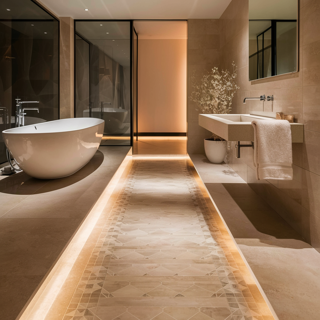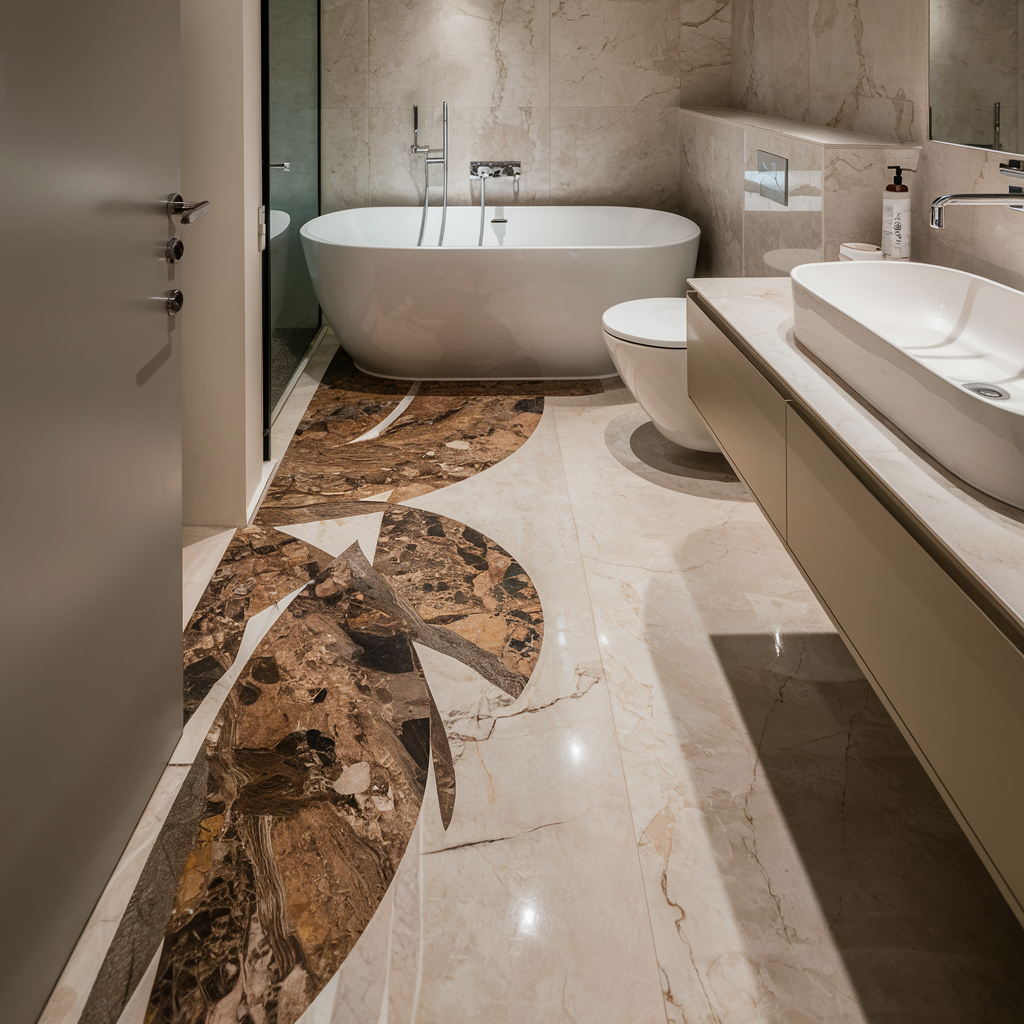 Ornamental touches can make your bathroom floor the focal point of your room from being merely a functional unit. Decorative tiles, intricate mosaics, or even custom inlays can be used to install a unique design in your bathroom. For instance, ornamental border tiles could be effective in framing the floor, and a central mosaic can serve as the focus.