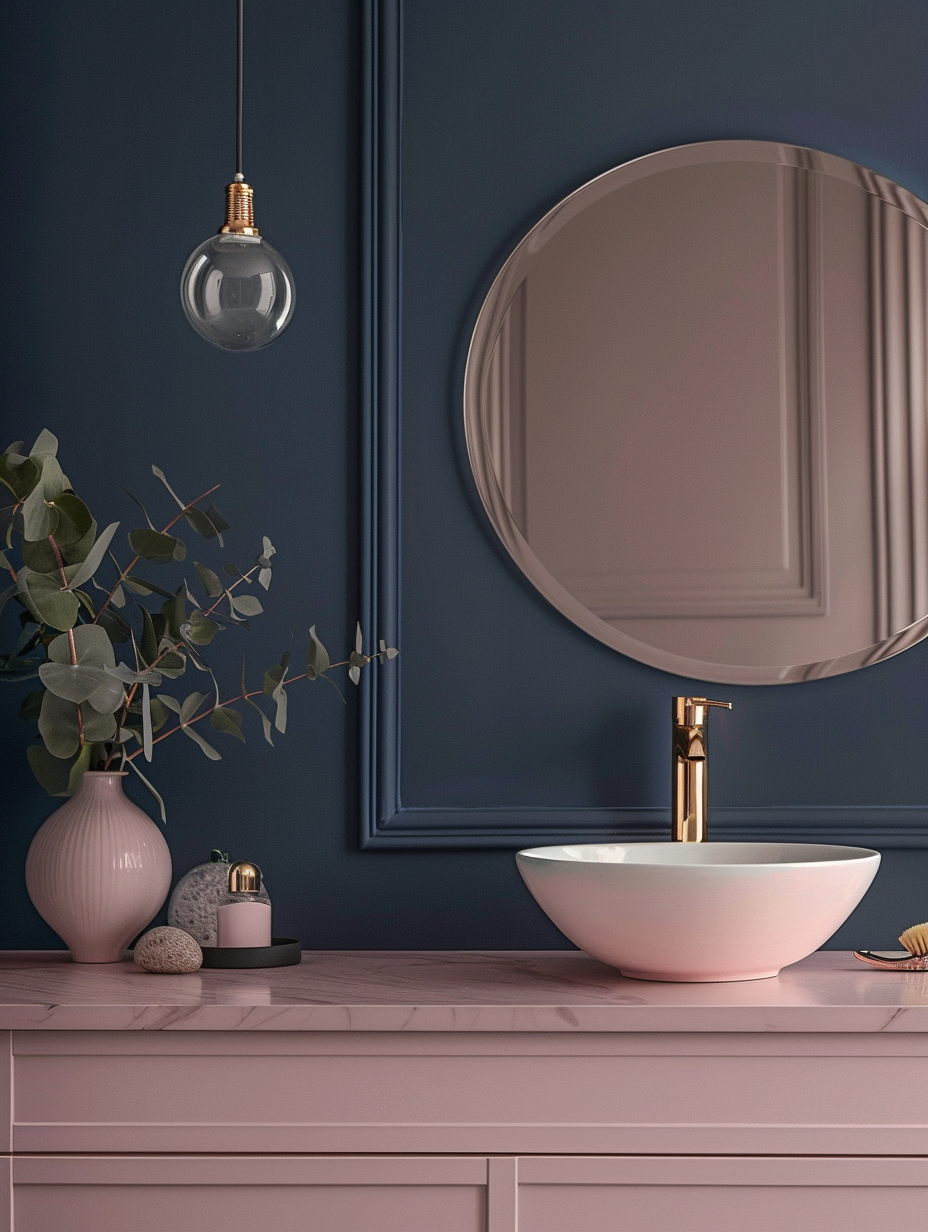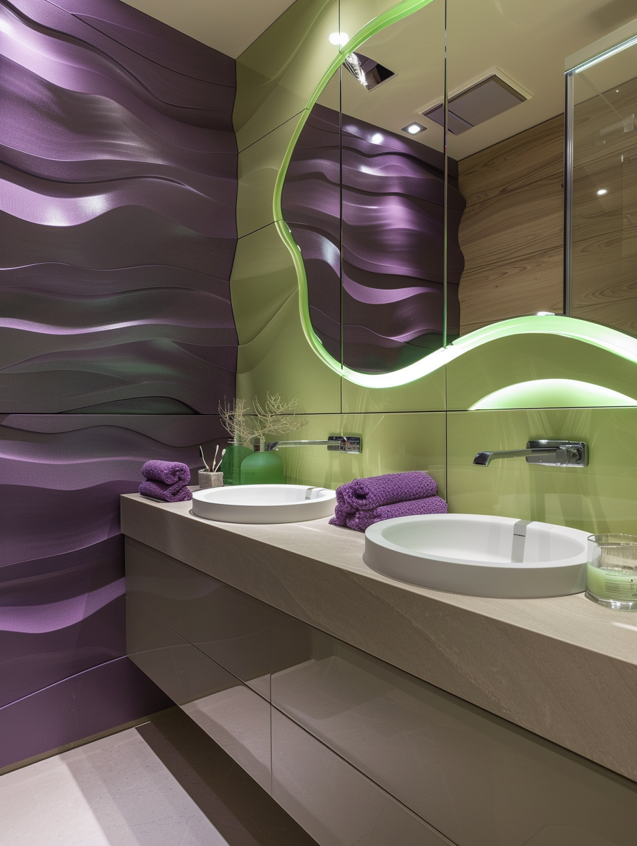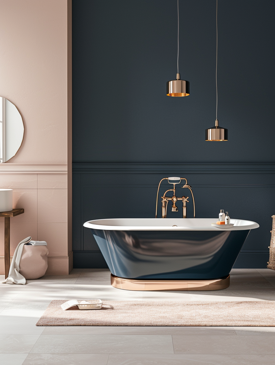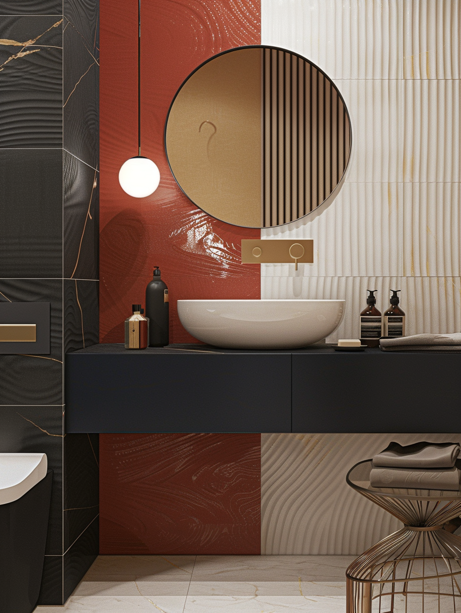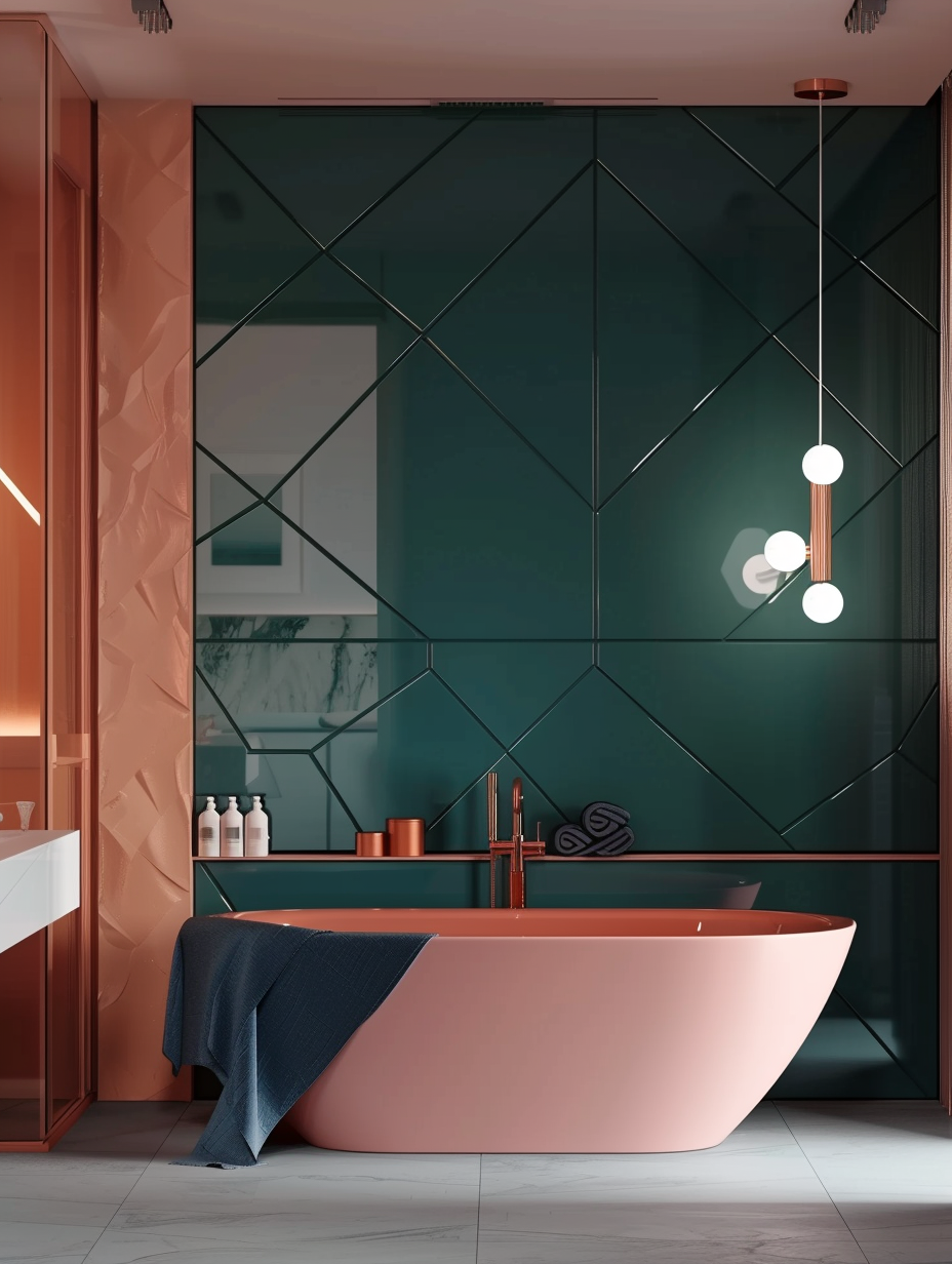 Metallics and glossy finishes are two elements that can provide your bathroom with the touch of luxury and elegance that it deserves. Upon using metallic colors such as gold, silver, and bronze on bathroom fixtures, mirrors, and accent pieces, and applying glossy finishes on walls or cabinets, these things are able to reflect light and provide you with a sleek, high-end appearance. This particular combination adds a glamorous touch to a bathroom that needs a revitalizing effect.