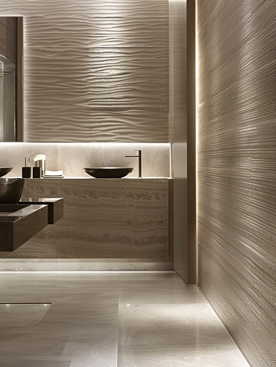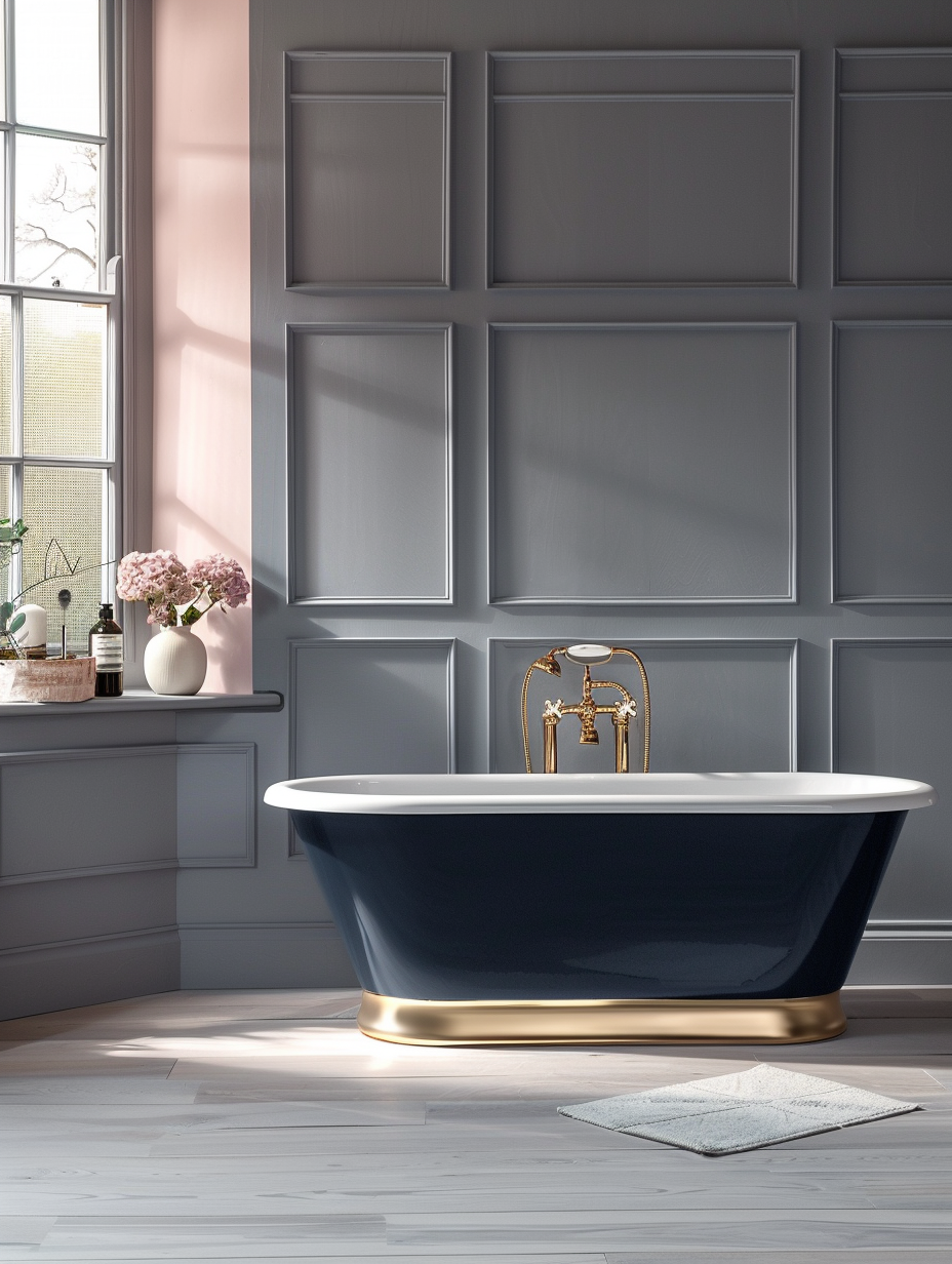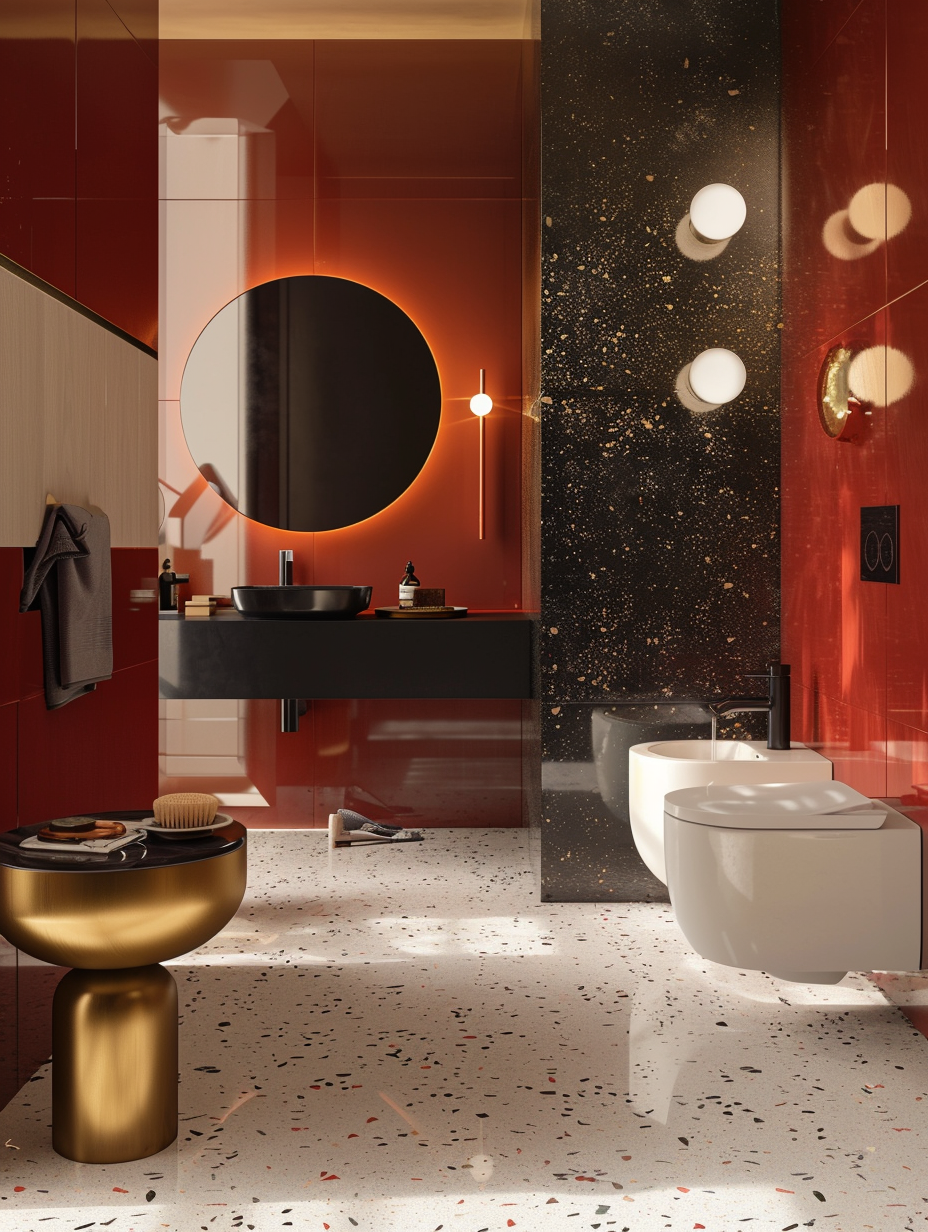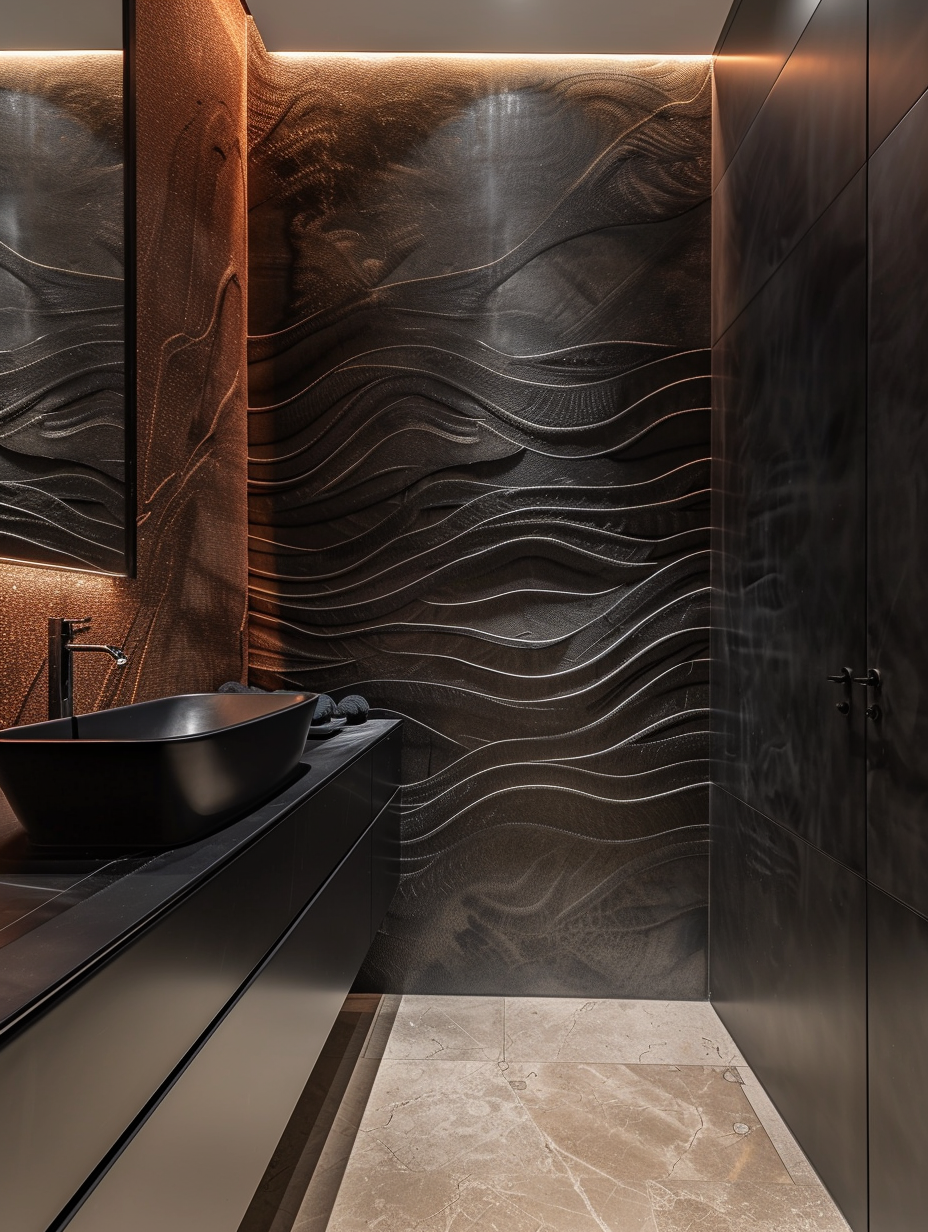 Metallics and glossy finishes are two elements that can provide your bathroom with the touch of luxury and elegance that it deserves. Upon using metallic colors such as gold, silver, and bronze on bathroom fixtures, mirrors, and accent pieces, and applying glossy finishes on walls or cabinets, these things are able to reflect light and provide you with a sleek, high-end appearance. This particular combination adds a glamorous touch to a bathroom that needs a revitalizing effect.