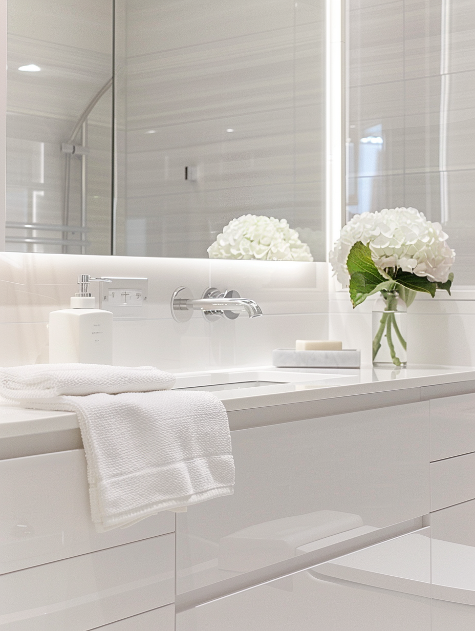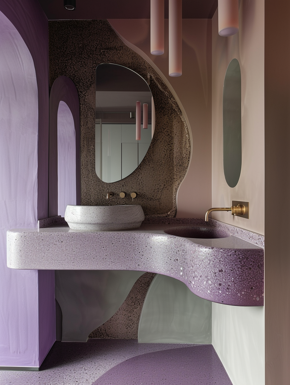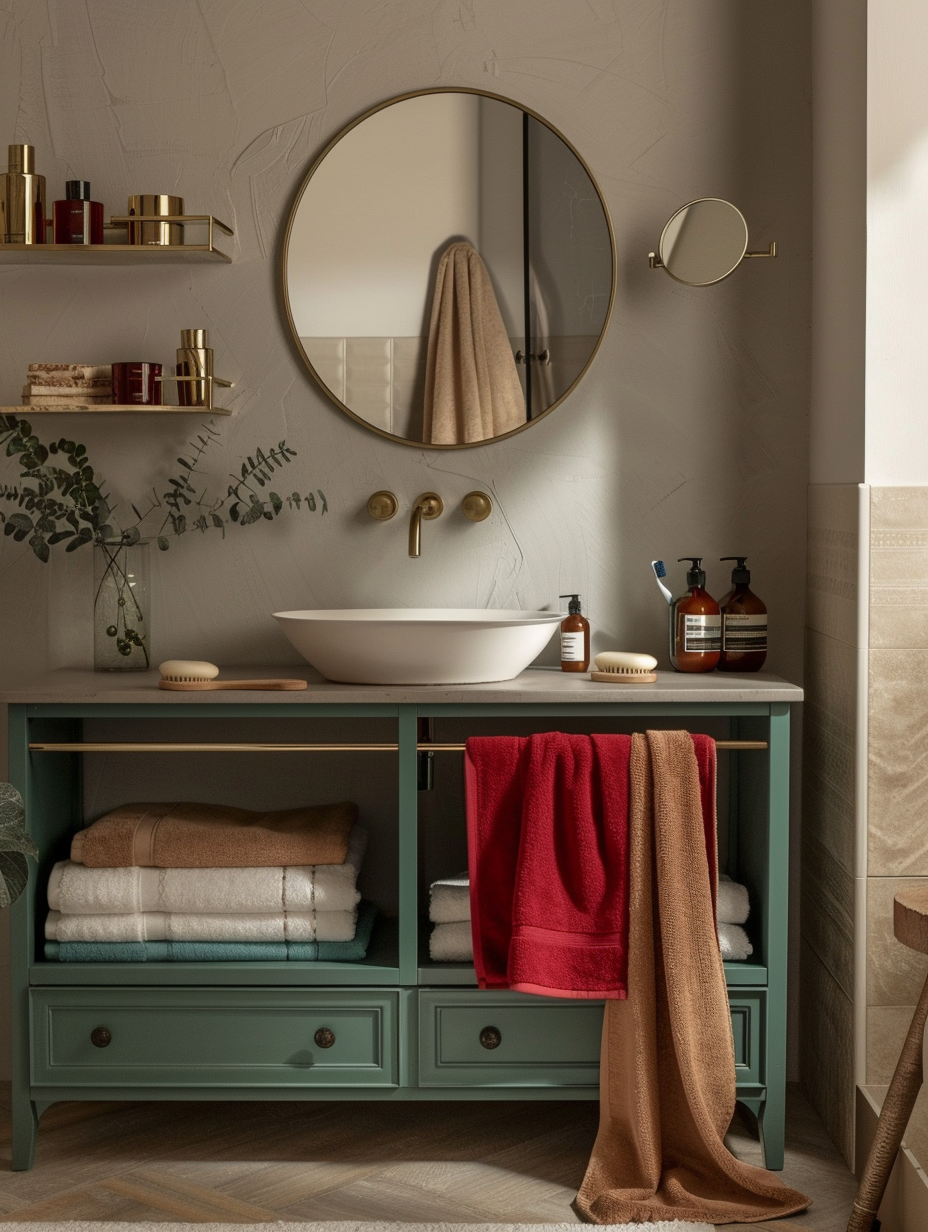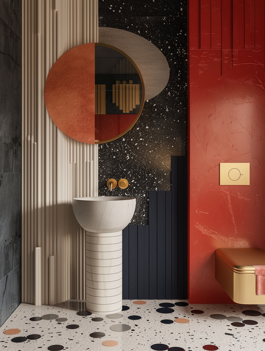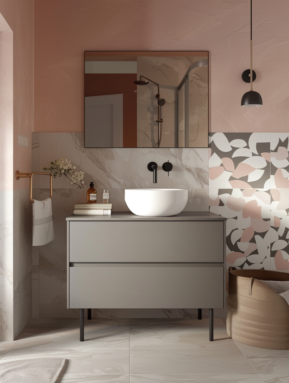Metallics and glossy finishes are two elements that can provide your bathroom with the touch of luxury and elegance that it deserves. Upon using metallic colors such as gold, silver, and bronze on bathroom fixtures, mirrors, and accent pieces, and applying glossy finishes on walls or cabinets, these things are able to reflect light and provide you with a sleek, high-end appearance. This particular combination adds a glamorous touch to a bathroom that needs a revitalizing effect.