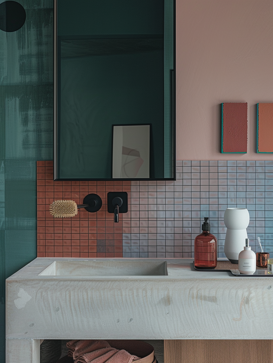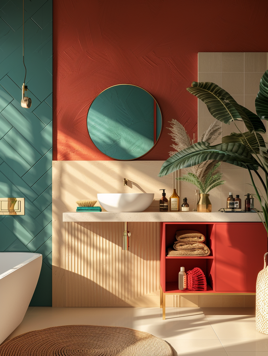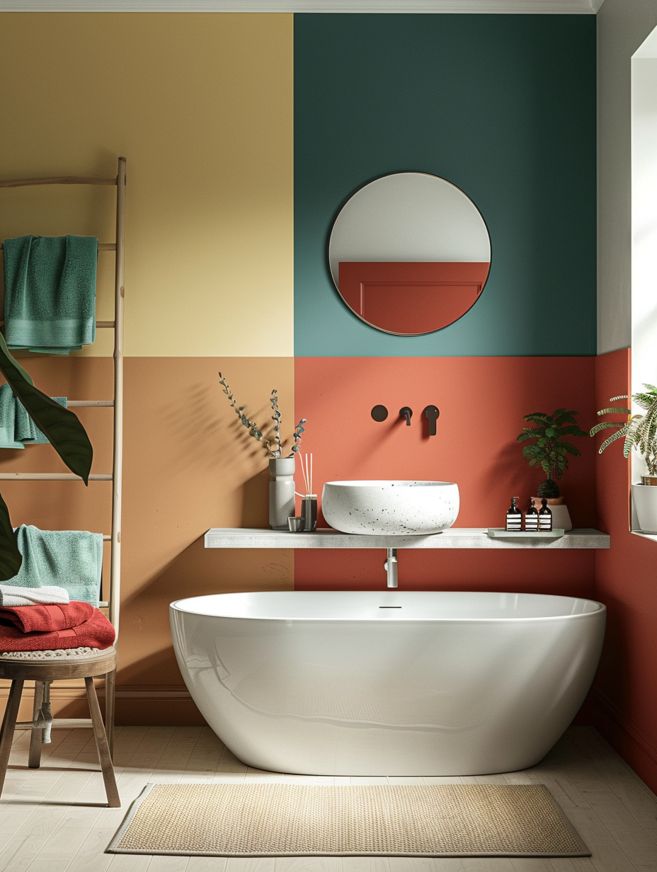 Complementary color schemes are color coordination ideas that use colors that are opposite each other on the color wheel to create a vibrant but balanced look. For instance, matching blue and orange or green and red is a way to bring vividness and enthusiasm into your bathroom. This strategy can be really successful when it pertains to creating an inviting and lively environment.