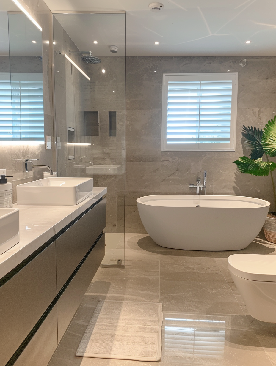 A monochromatic color scheme implies the use of different hues of one color thus fashioning a neat and polished style. This method can make your bathroom seem classy and balanced. Classical monochromatic themes may contain different degrees of gray, blue, or beige, that can best be resplendent with different textures and materials to give them an extra-dimensional kind of look.