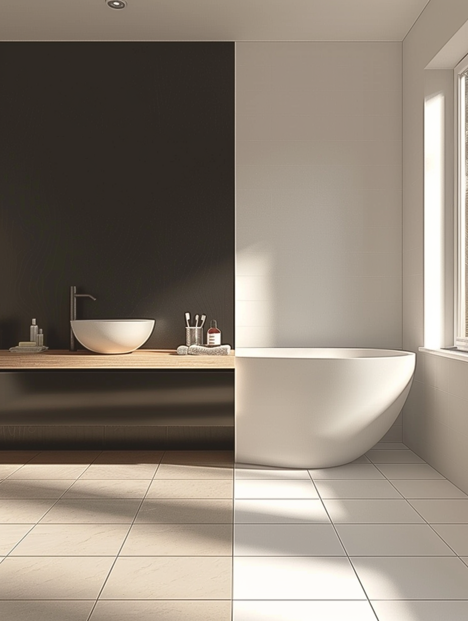By incorporating two distinct colors, e.g., navy-blue and white or black and white, will let one achieve a modern and stylish look for any bathroom. The choice stands in the origination of the contrast with one another. Always make sure to add cozy accessories and fixtures.