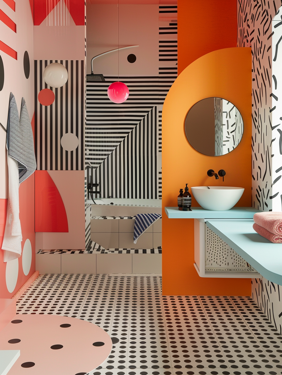 One can combine different colors and patterns to have a lively and good-looking bathroom. Bright patterns like geometric tiles and floral wallpapers, as well as such deep colors will be the essential. A piece of advice for this task is to use the conventional colors for the larger spaces and the complicated patterns for the smaller spaces.