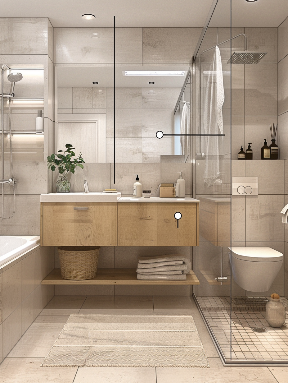Minimalist bathrooms are the most perfect places for simple and clean life. Their most widespread features are monochromatic color schemes such as whites, greys, and blacks. These colors exist as the main factor to provide the design with a clear skin and no entanglement of any kind. Subtle differences in texture and finish could enhance the depth of the minimalist look without trying too much.
