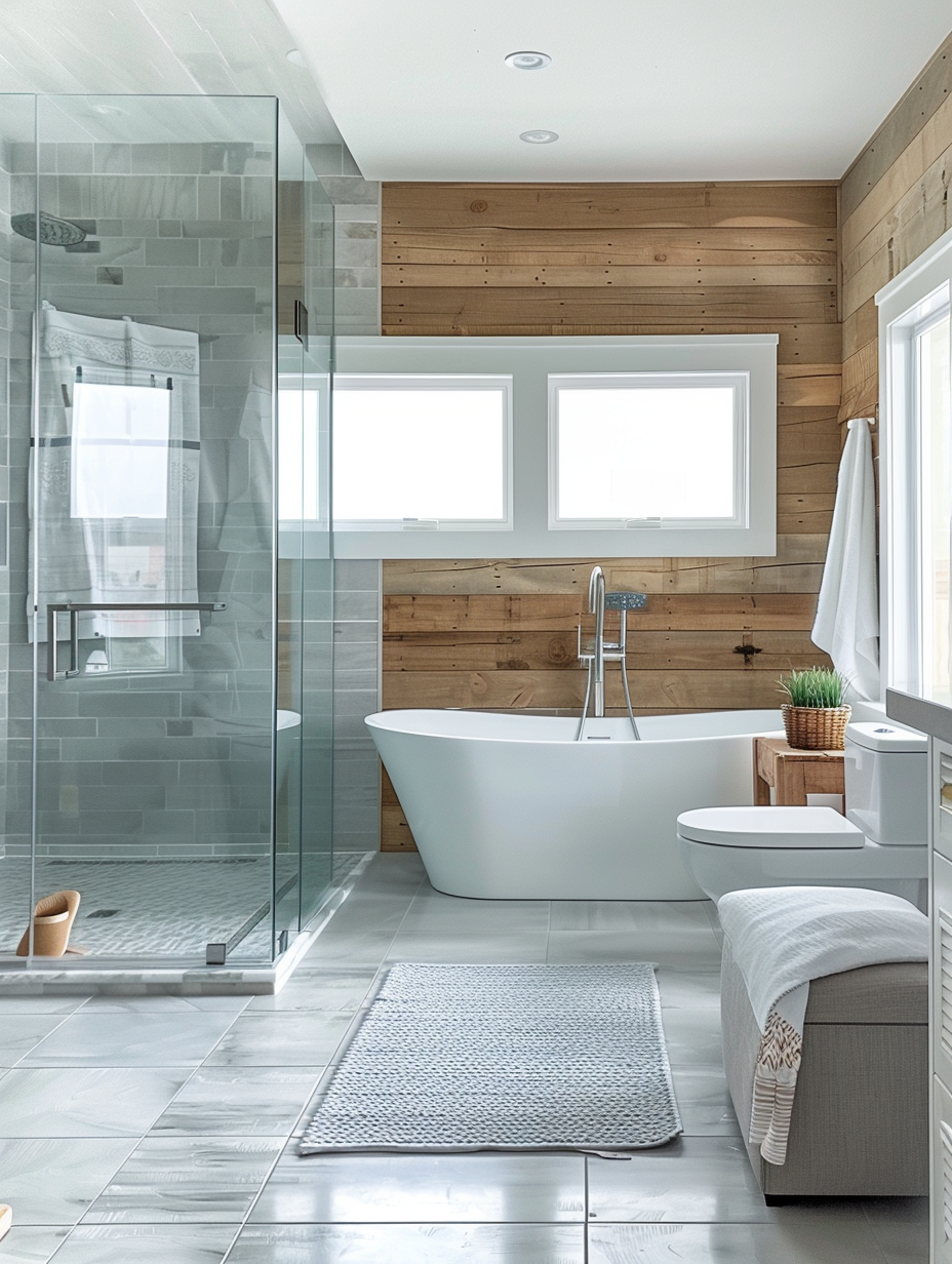 Due to the employment of the aforementioned natural materials and vintage fixtures in a bathroom setting, rustic farmhouse showers are remarkable for their ability to bring about the feelings of warmth and charm. Complementing the different textures of the wood, tiles, and metal can also add to the overall country feel.