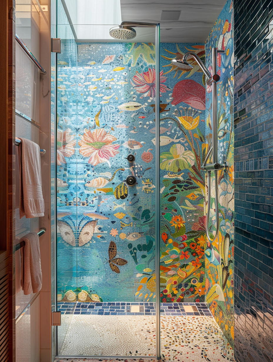 Artistic Mosaic Shower Walls