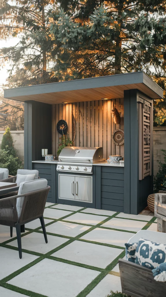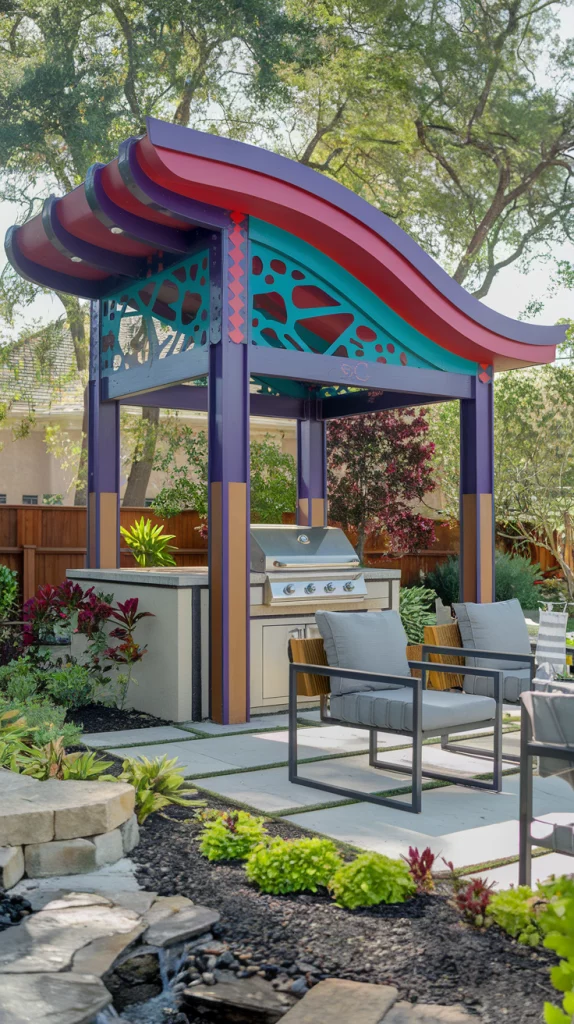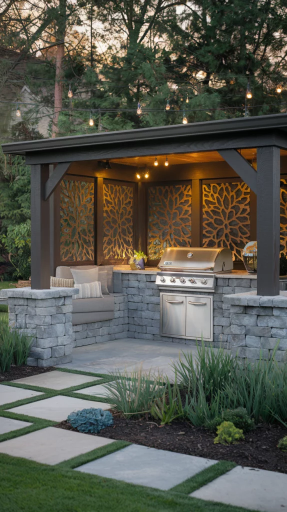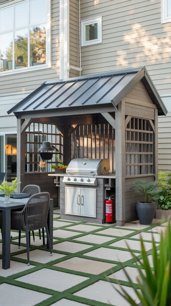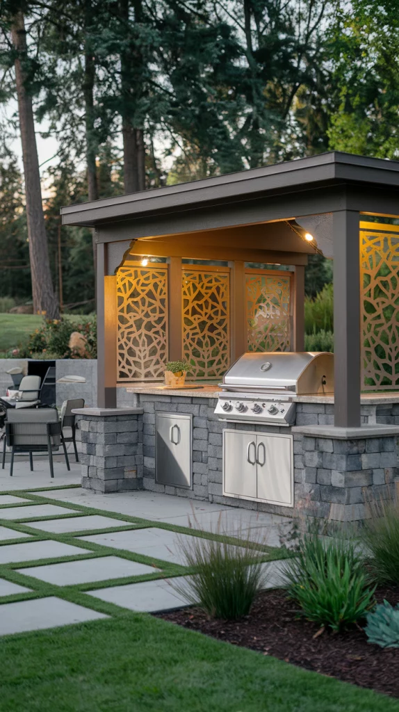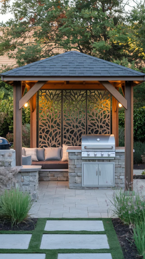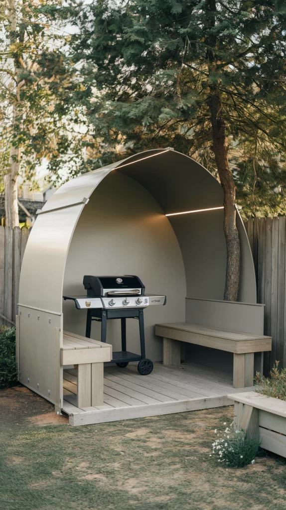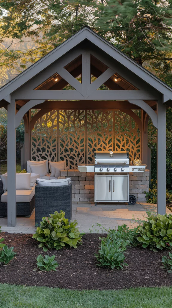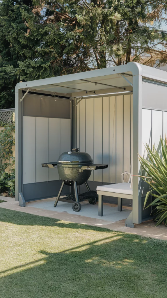 For added seclusion, BBQ shelters with decorative privacy screens offer both functionality and aesthetic appeal. These screens are often made from laser-cut metal, wood, or bamboo, featuring intricate patterns that enhance the design. Privacy screens not only create a cozy atmosphere but also provide wind protection and a stylish backdrop for your grilling station.