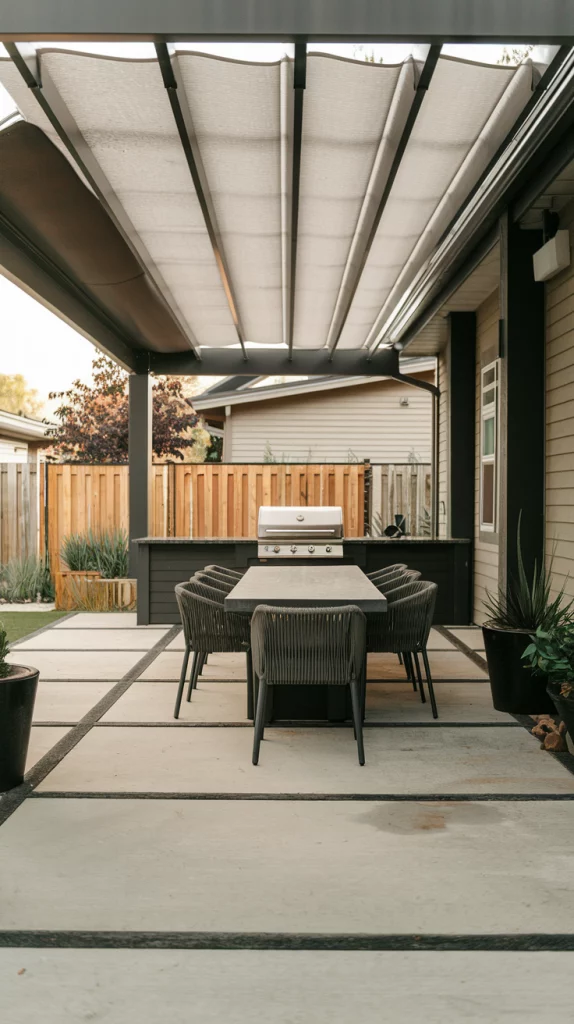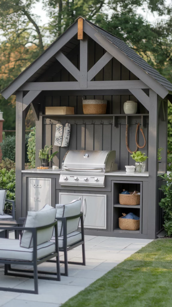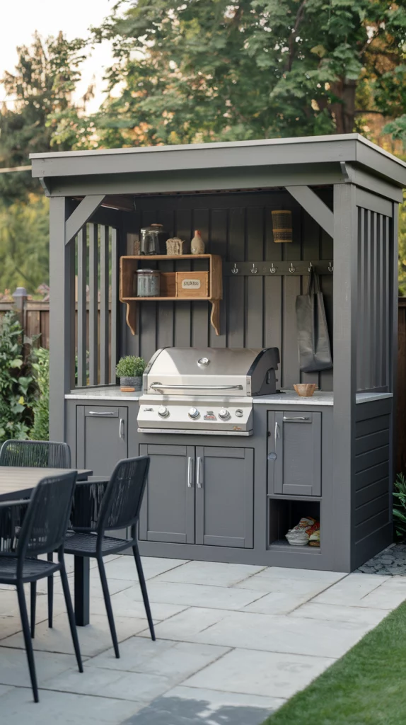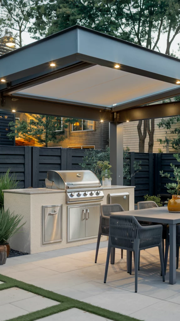 A BBQ shelter with an adjustable canopy offers versatility for outdoor cooking and dining. These shelters allow you to control the amount of sunlight or shade, making them ideal for changing weather conditions. Use materials like retractable fabric, louvered panels, or motorized canopies for modern convenience. Pair with sleek outdoor furniture for a cohesive look.