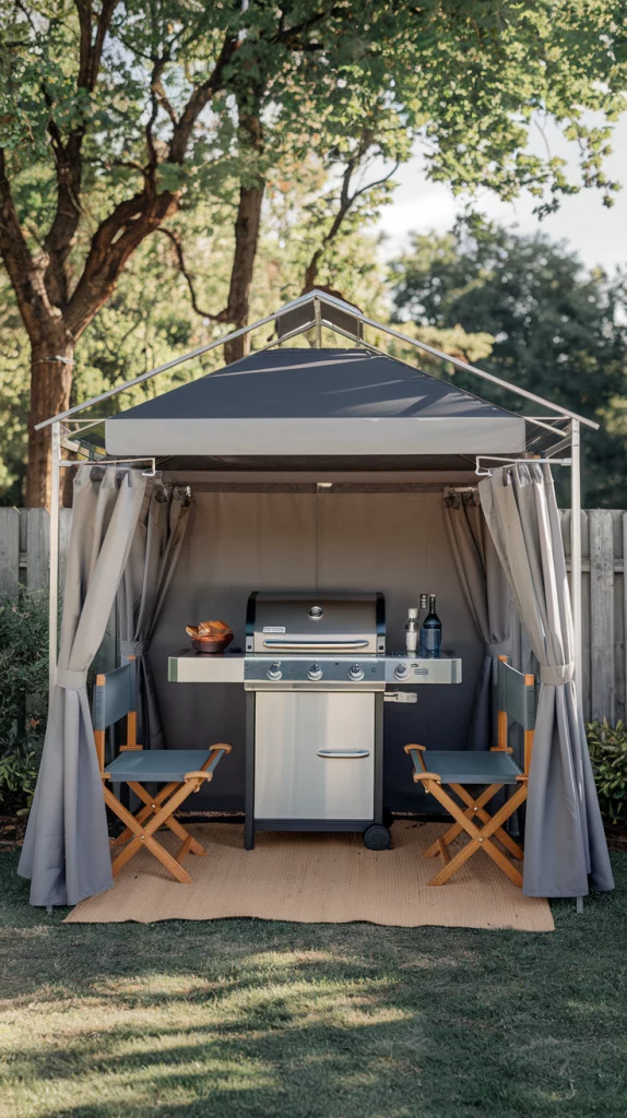 For those who value flexibility, a portable BBQ shelter is an excellent choice. Lightweight and easy to assemble, these shelters are perfect for camping trips or temporary setups. Constructed from aluminum or steel frames with fabric canopies, they pair beautifully with foldable furniture for a convenient, mobile solution.