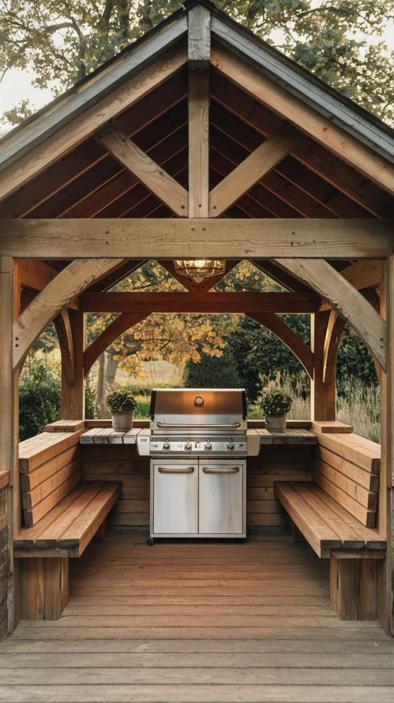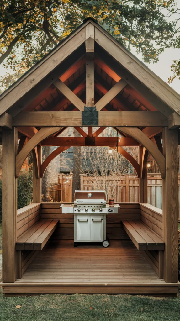 Stylish Wooden BBQ Shelters for Backyard Gatherings