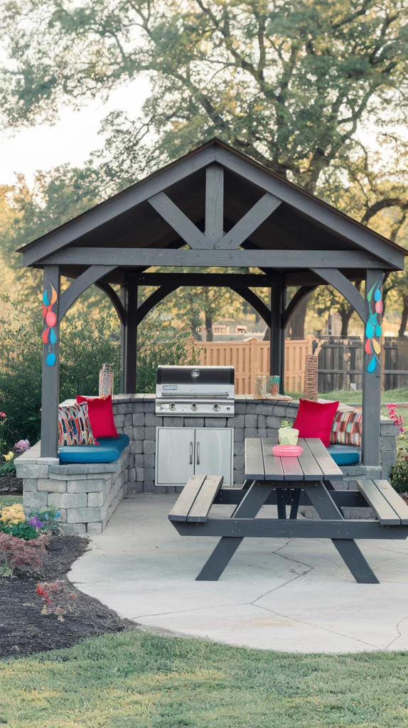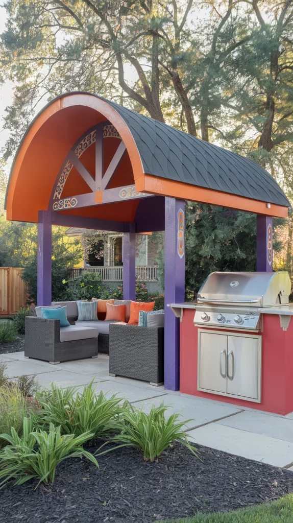 Make a statement with a BBQ shelter featuring a unique roof design. From curved and multi-level roofs to those with decorative patterns or vibrant colors, these shelters add a bold architectural element to your outdoor space. Unique roofing not only enhances aesthetics but also offers improved ventilation and weather resistance.