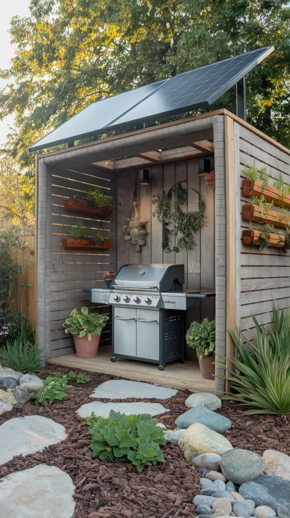 An eco-friendly BBQ shelter is perfect for those who value sustainability. These designs use renewable materials such as bamboo, reclaimed wood, or recycled metal. Incorporate solar panels to power lighting or cooking appliances, and add greenery with vertical gardens or potted plants to enhance the natural aesthetic. This approach not only helps the environment but also creates a serene outdoor retreat.