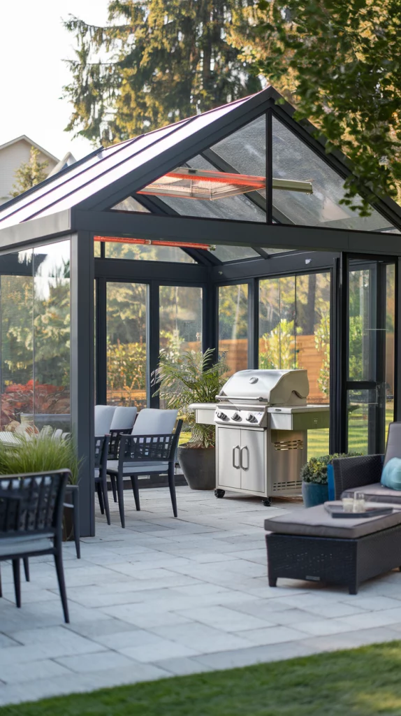 An enclosed BBQ shelter allows you to enjoy grilling no matter the season. With walls made of glass, wood, or metal panels, these shelters provide protection from wind, rain, and cold weather. Add heating elements or insulated walls for enhanced comfort, ensuring a cozy and functional space all year round.