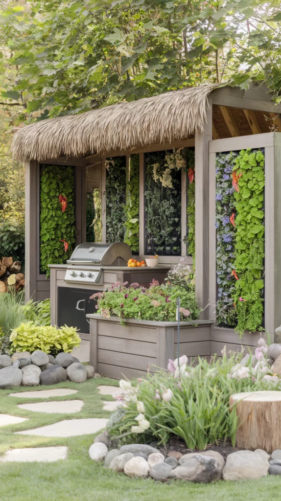 A BBQ shelter with integrated garden features combines outdoor cooking with the beauty of nature. These designs often include vertical gardens, built-in planters, or flower beds that seamlessly blend with the shelter. Incorporating natural elements creates a calming environment perfect for enjoying meals outdoors.