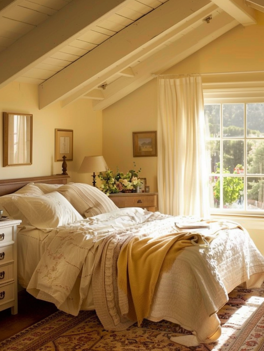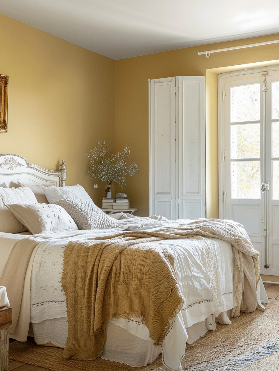 Yellow is a cheerful and inviting color that can brighten up any bedroom. Choose pale, lemony tones and rich mustard colors to make a room that is both warm and inviting. Furthermore, add white or light wooden furniture and warm home textiles besides to make the look totally complete. Such color combination is quite suitable for the sunny and uplifting ambiance.