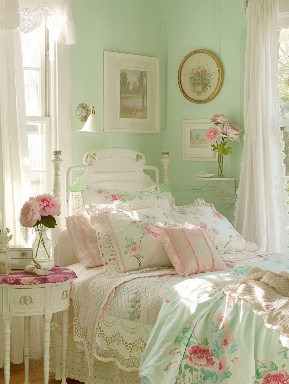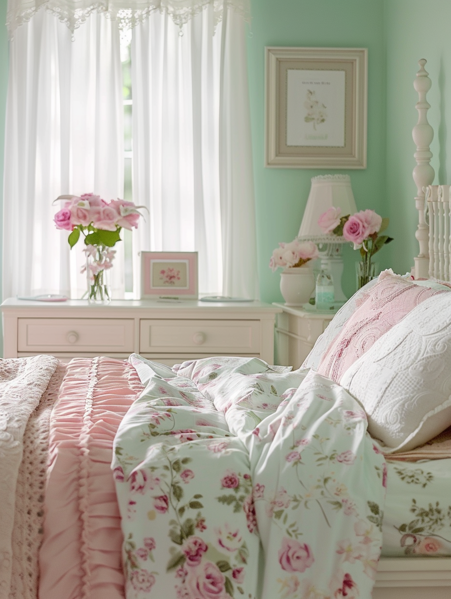Pastel colors are a key feature of a calm and relaxed atmosphere. Sweet pink, lavender, mint, and baby blue are soft colors that significantly lighten the room and give it the spirit of peacefulness. As a result, you can combine them with white or light wood furniture and decorative items such as lace curtains and floral prints. This whole area has come to be a haven of quietness and calmness that one seeks.