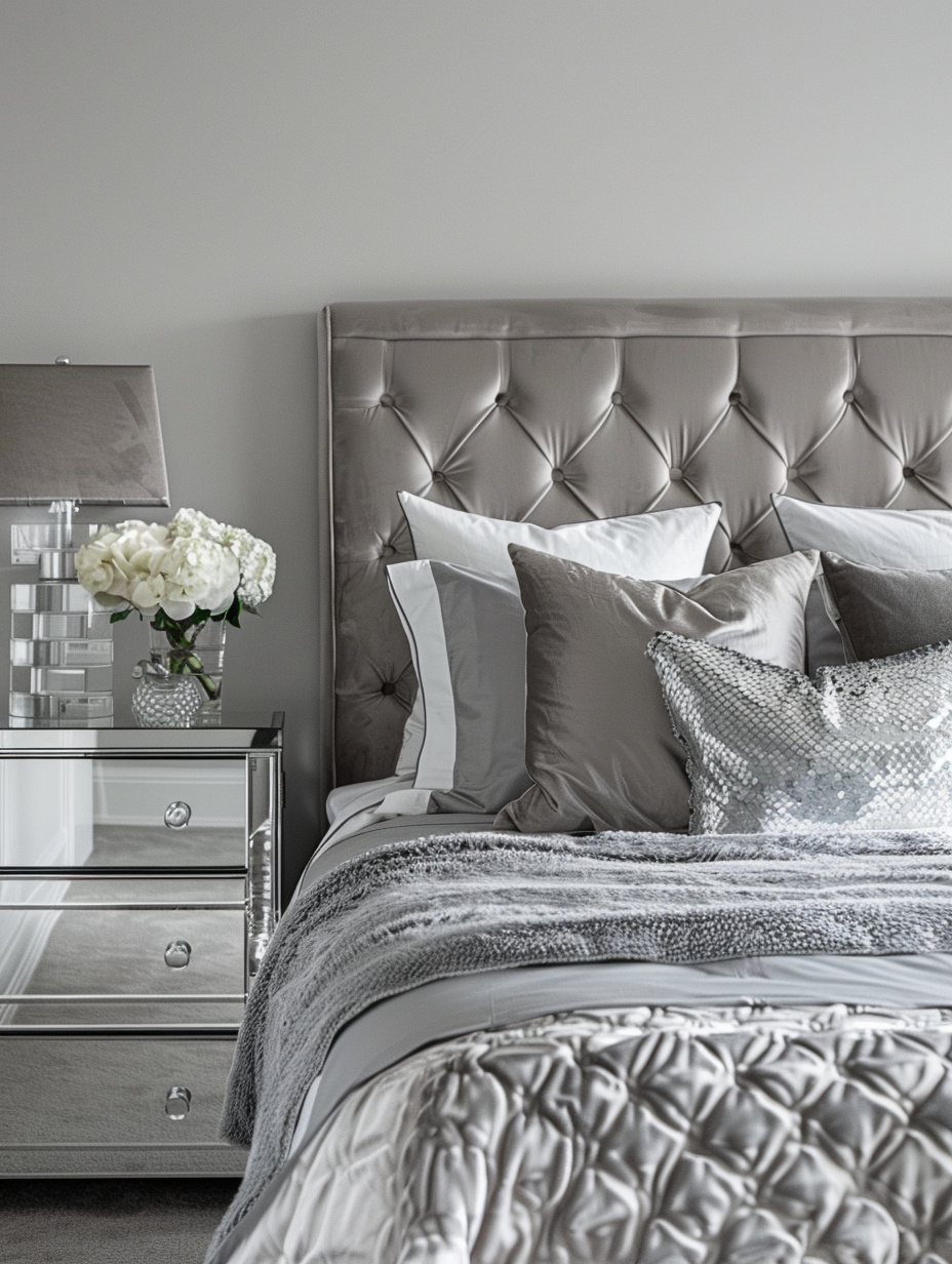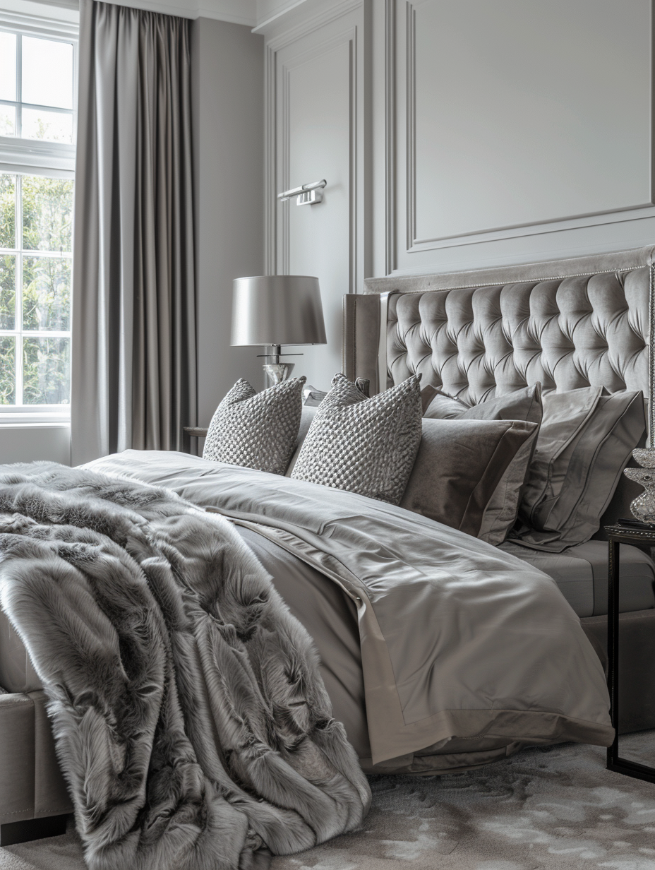 Gray and silver colors can give your bedroom a fashionable and classy look. Have the walls painted in different shades of grey from soft dove grey to dark charcoal and also use silver accessories like metal items, decorated lamps, and frames. Additionally, team your room with a grey headrest and a soft bedspread for a rich and opulent flavor. Such color scheme is absolutely ideal for the interior of modern and sophisticated structures.