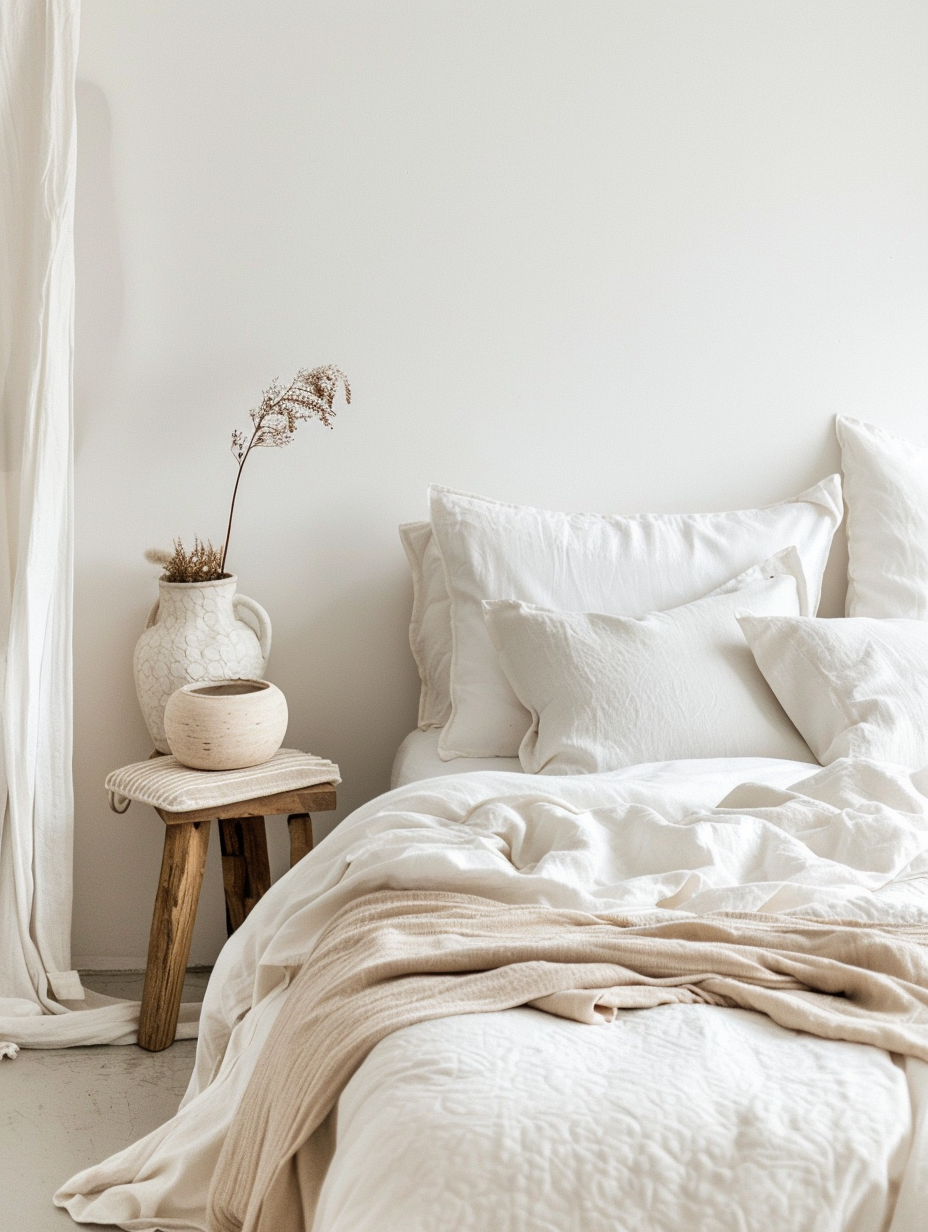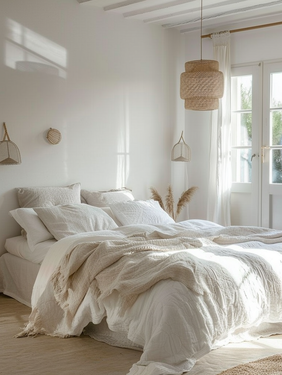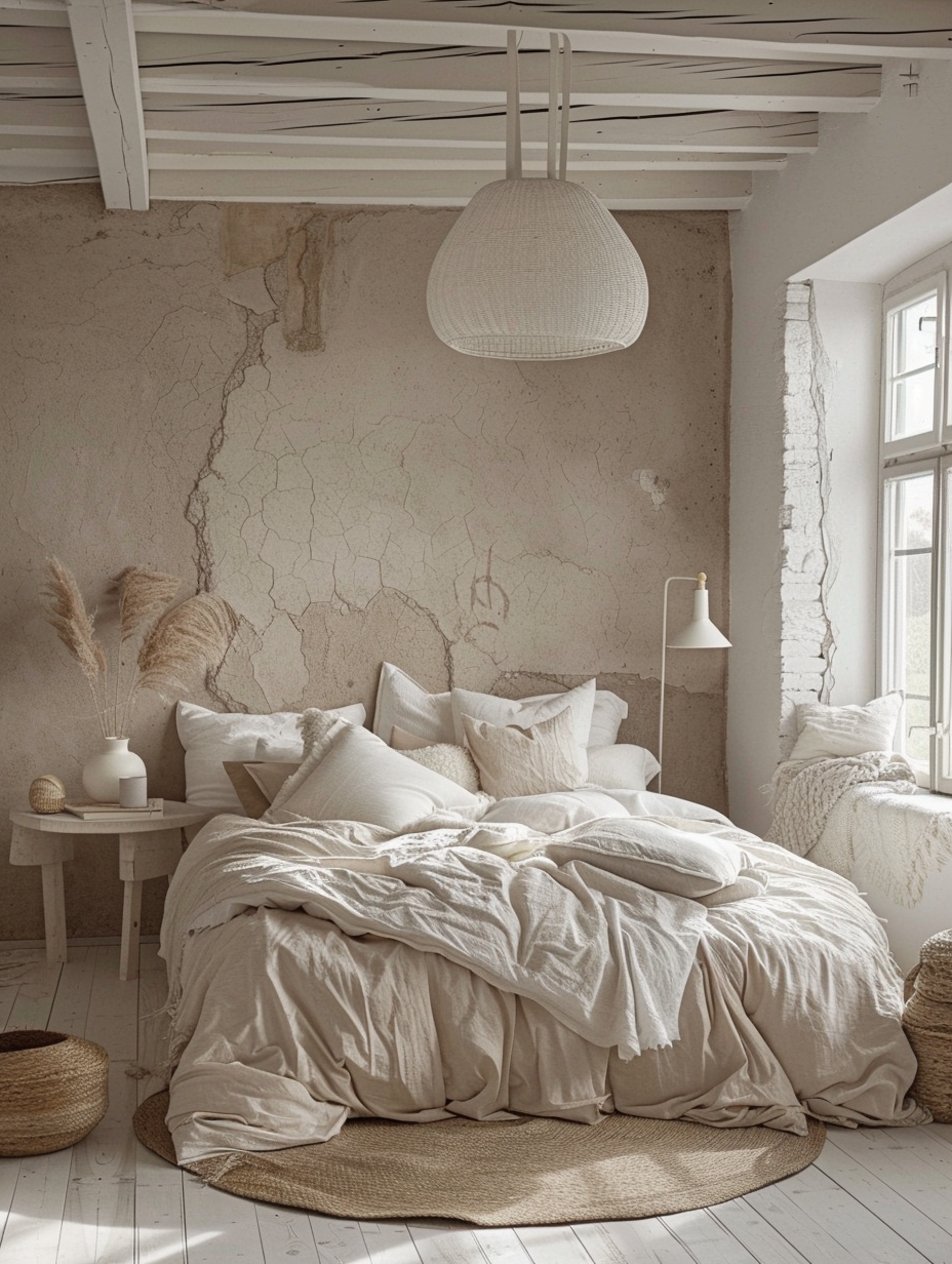 White is a wonderful selection for bringing about a serene and restful bedroom. Employ different white tones for walls, bed linen, and furniture to have a united relaxed and soothing atmosphere. Infuse the room with variety by using different textiles and accents that are inconspicuous so that the room does not become redundant. This is an excellent visualization for fresh and minimalist interiors.
