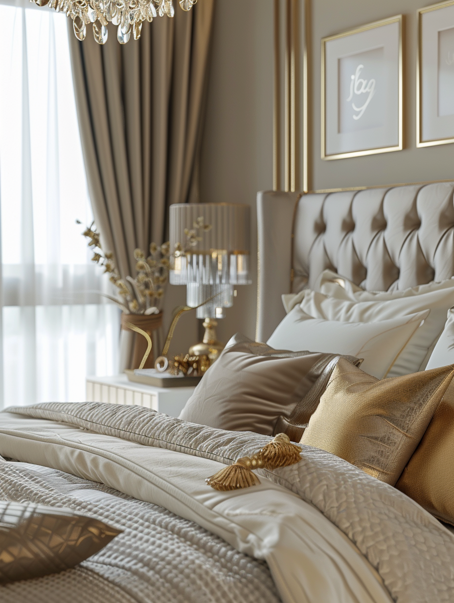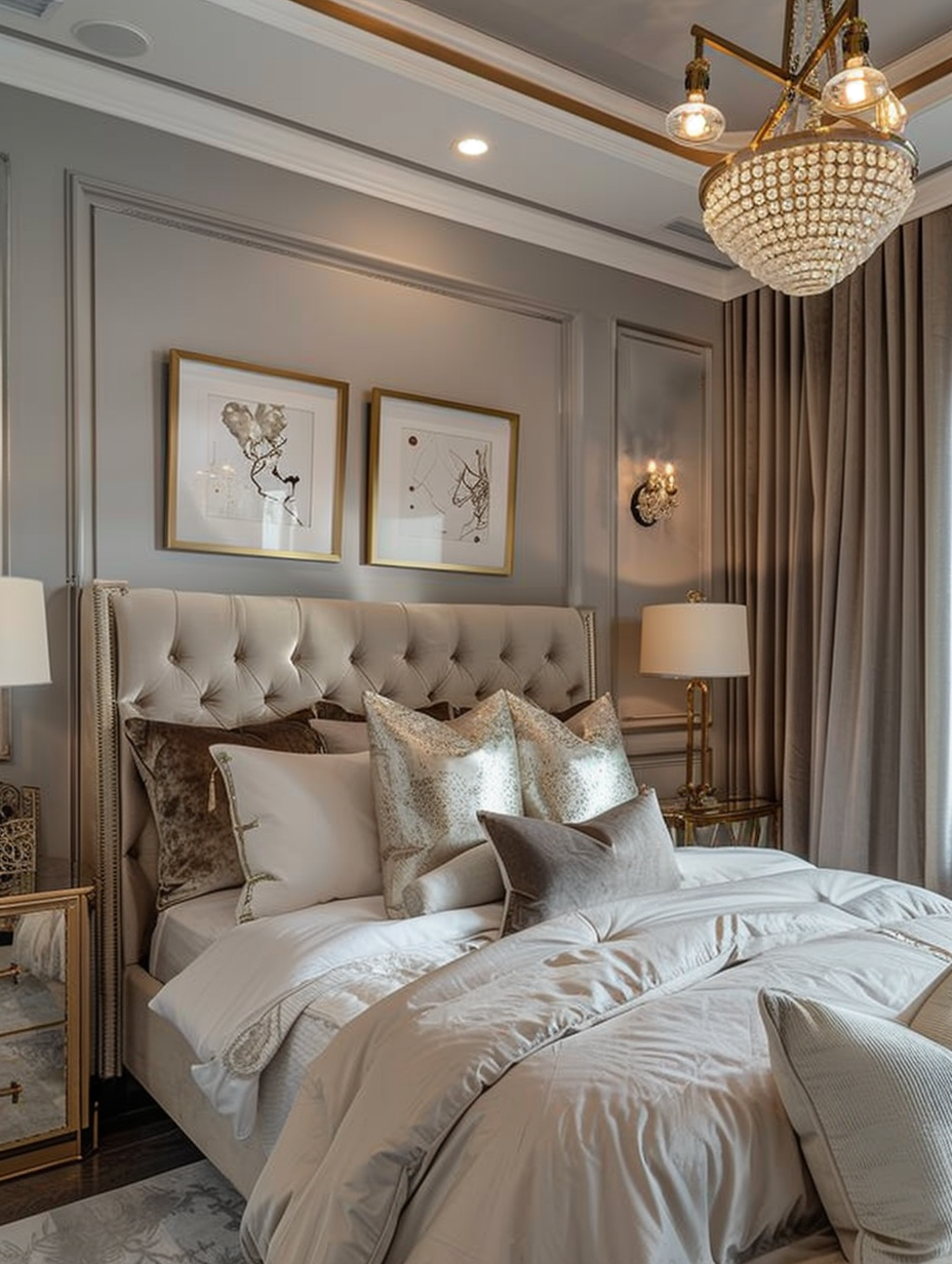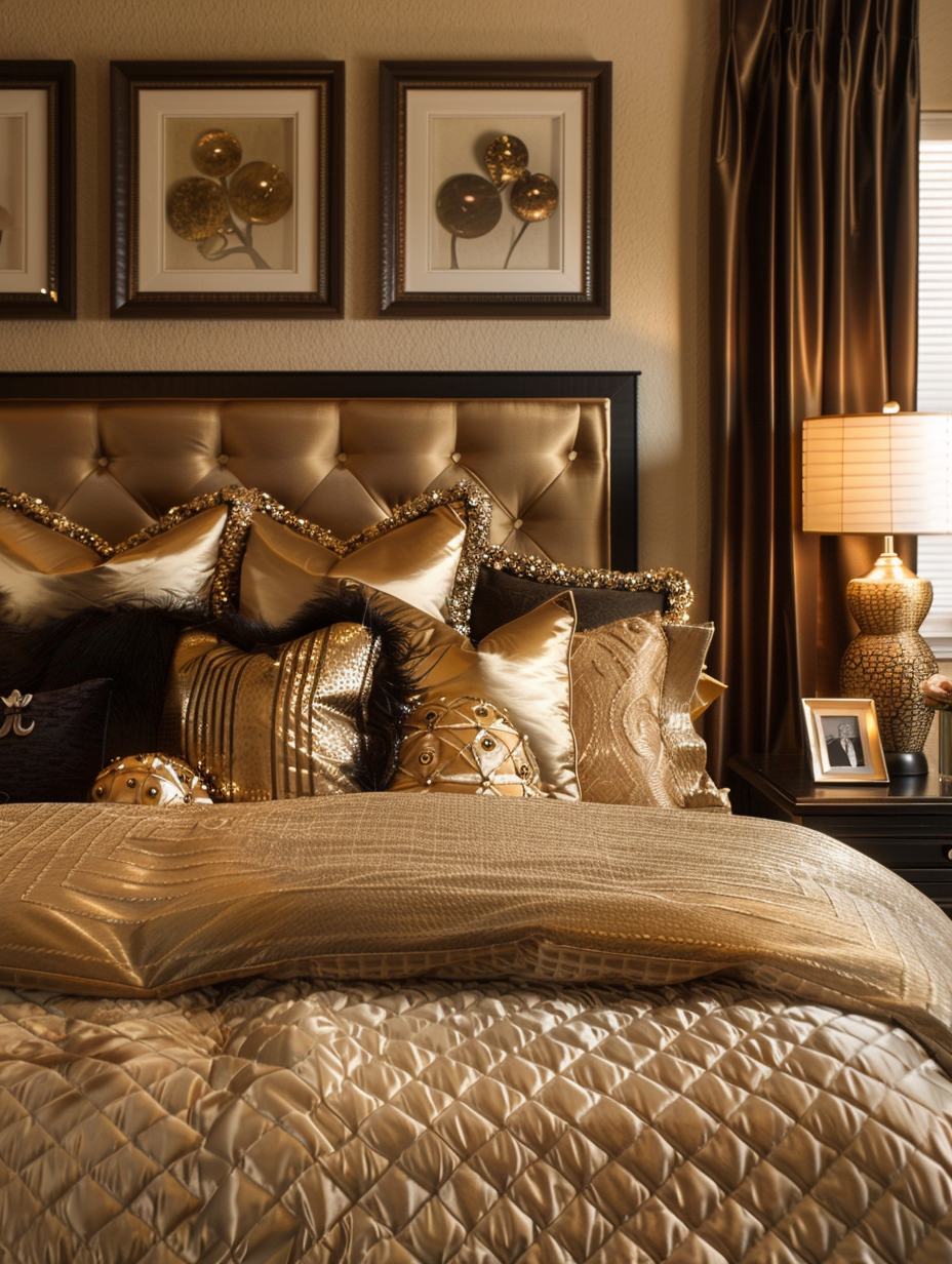 You can add a touch of luxury and elegance to your bedroom by using golds and bronzes. Try these rich metallic hues on accent items like lamps, picture frames, and toss pillows. Combine them with neutral walls and bedding to generate a harmonious and stately impression. This color scheme works really well for those who would like to make a luxurious and smart bedroom design.